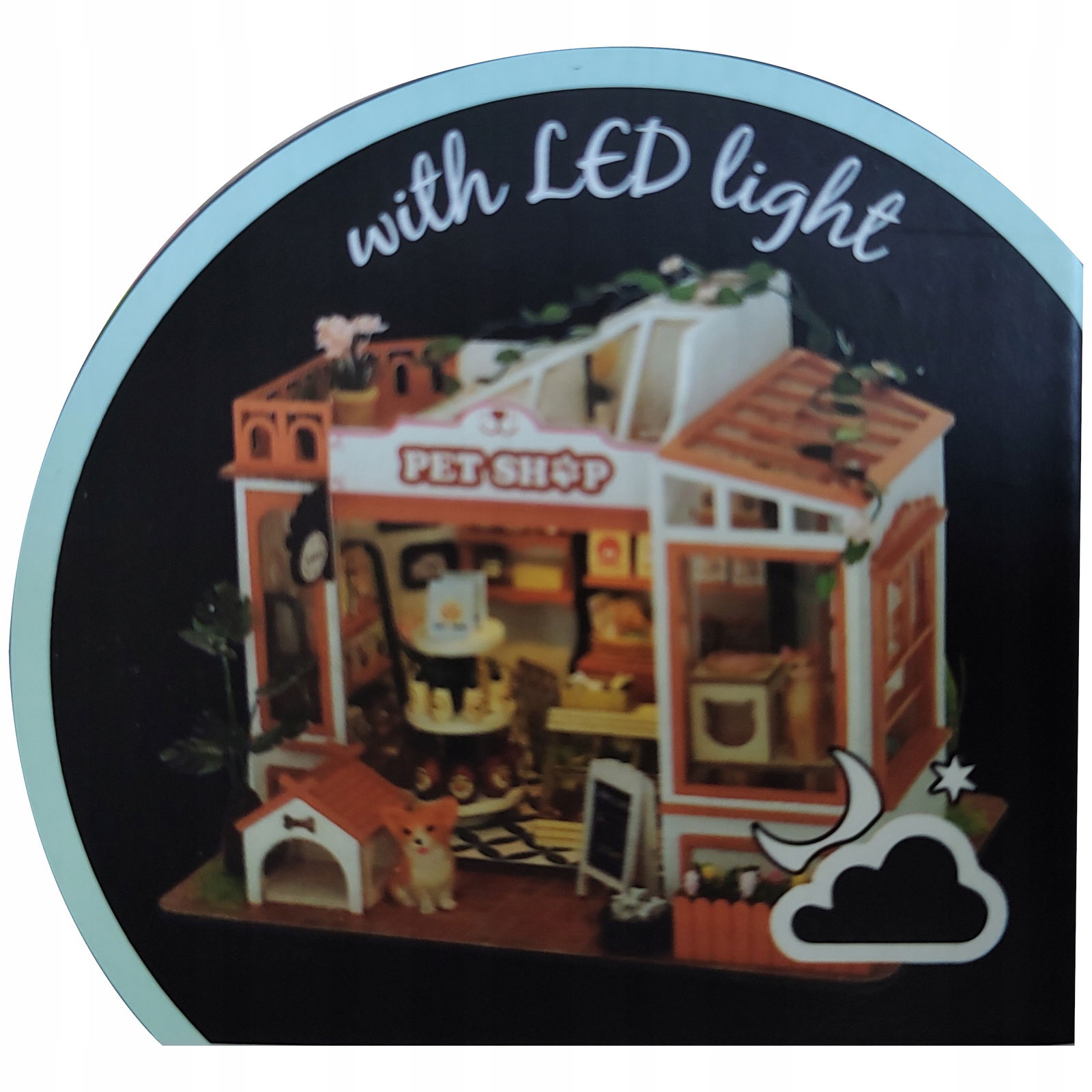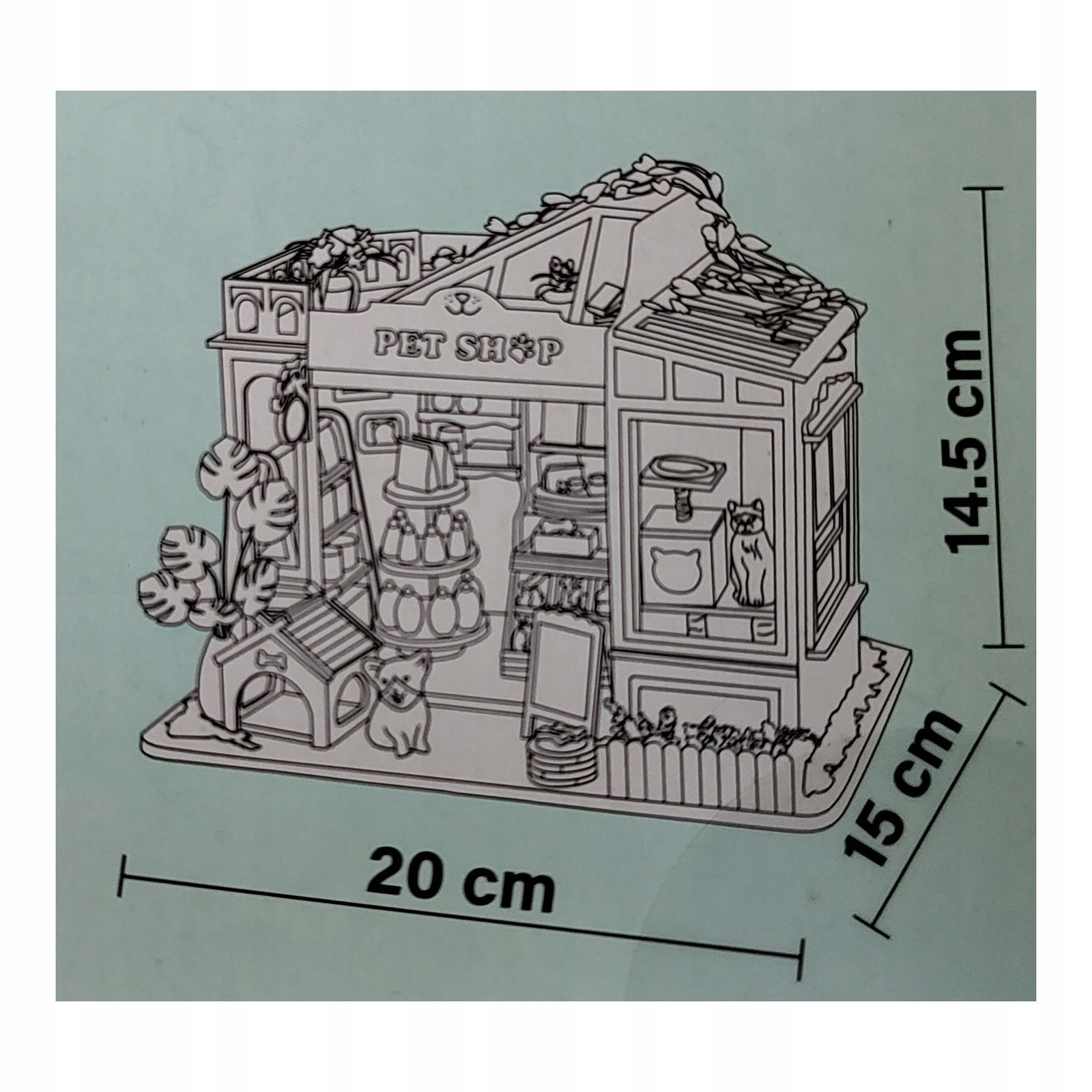 Drewniany model do samodzielnego skladania Pet Shop 3D z podświetleniem 90