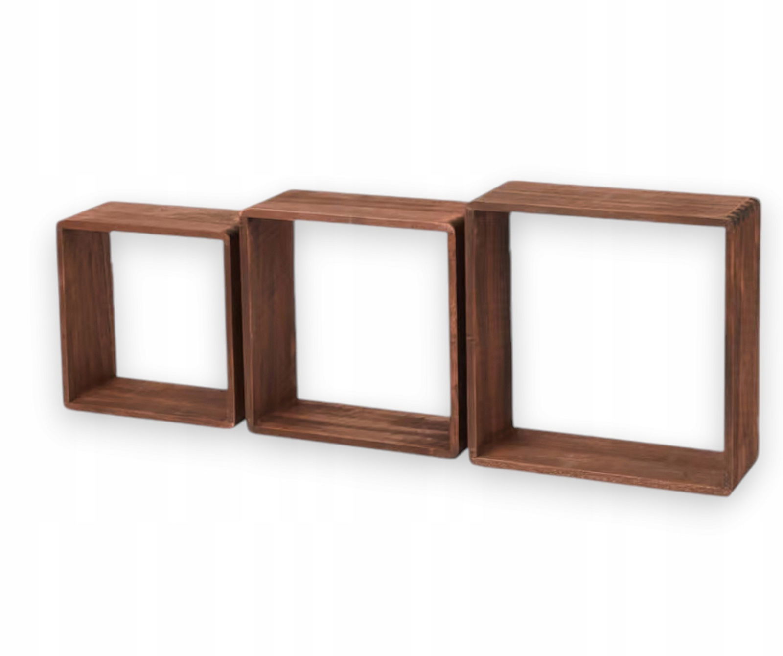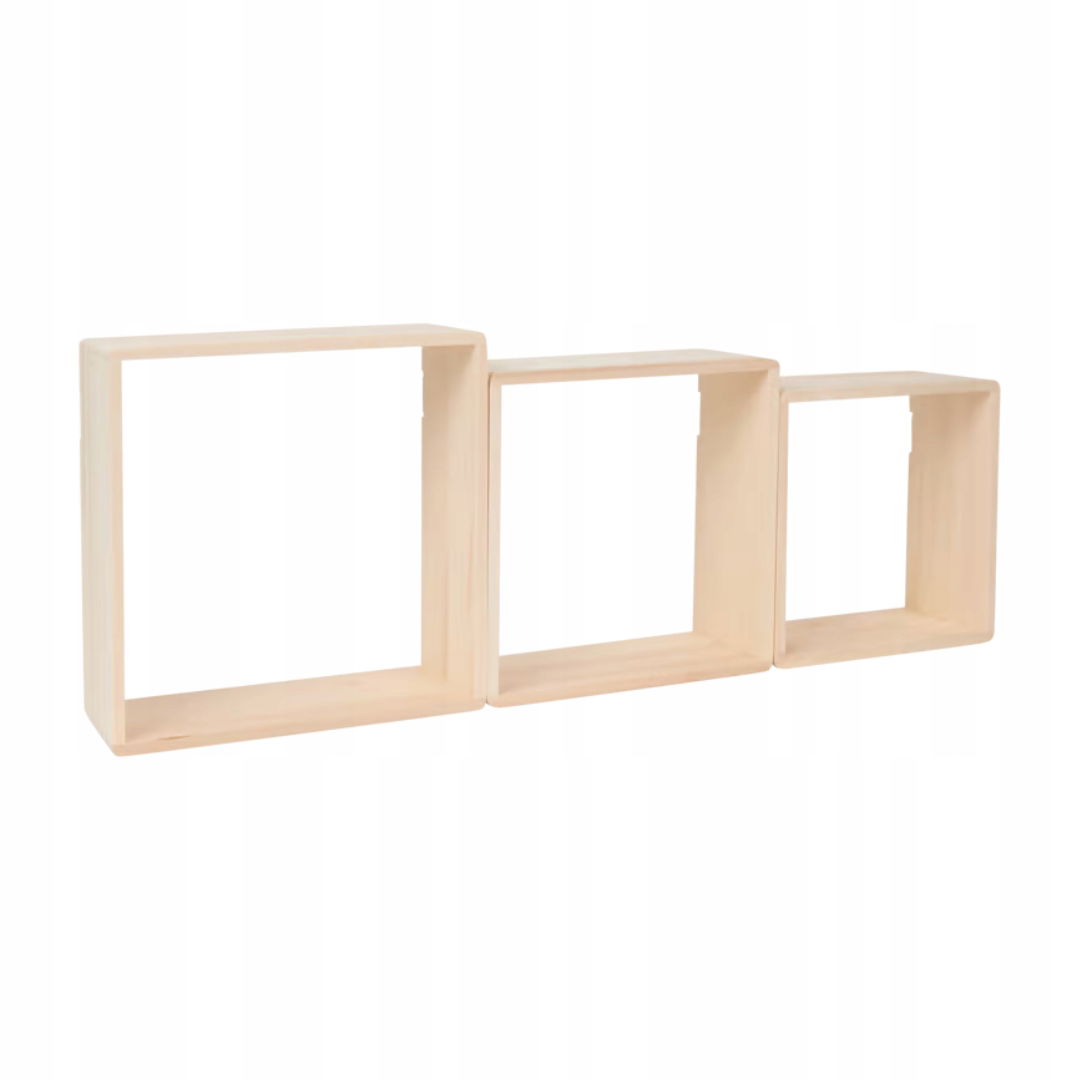 DREWNIANY REGAŁ ŚCIENNY CUBE 3 szt RÓŻNE ROZMIARY BRĄZ JASNY PÓŁKI WISZĄCE