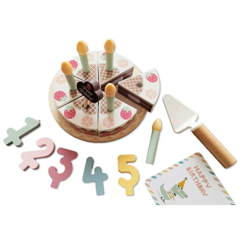 DREWNIANY TORT URODZINOWY Z ŚWIECZKAMI
