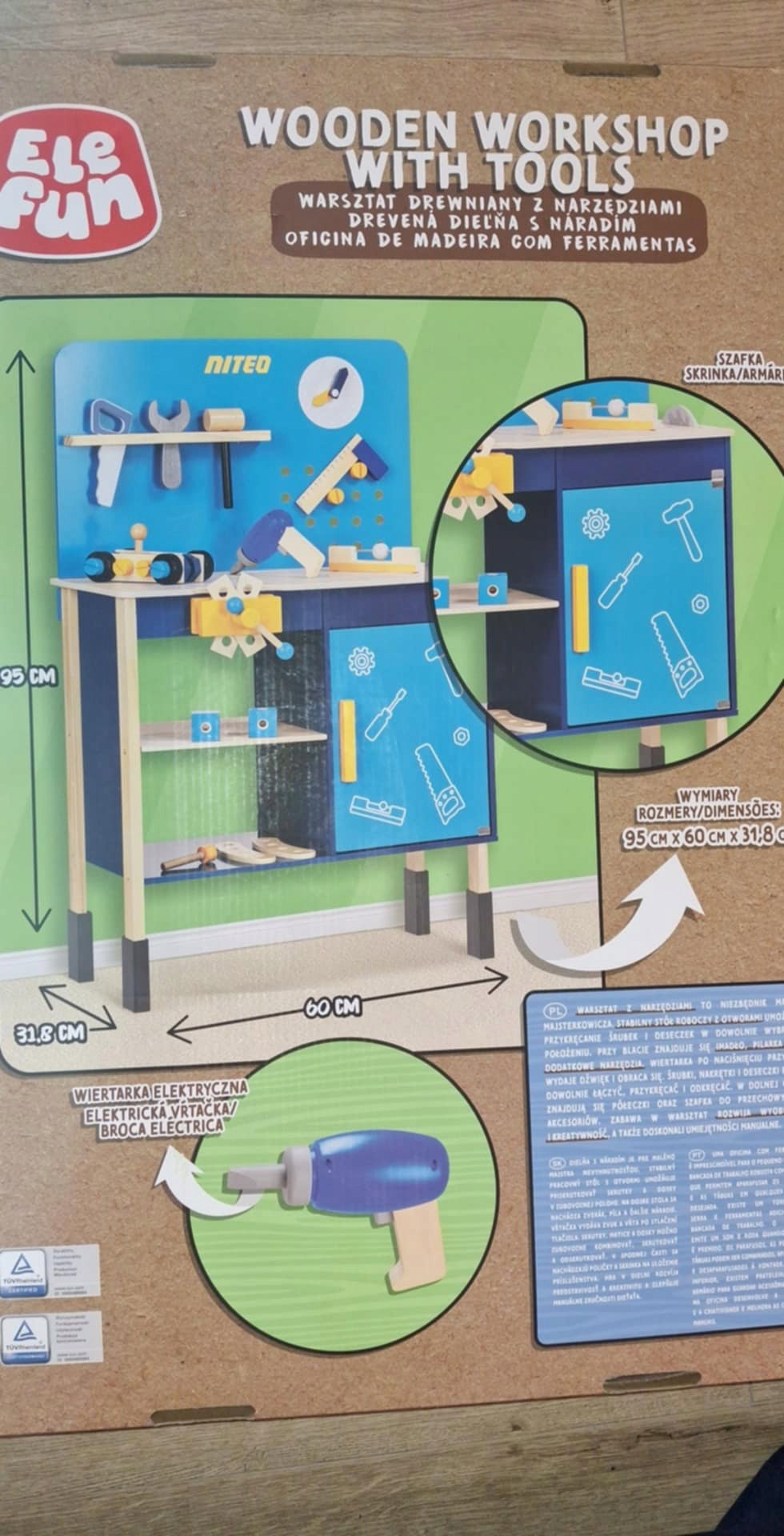 Elefun Niteo Kids Warsztat drewniany z narzędziami 36el. DUŻY - 95 x 60 x32 cm