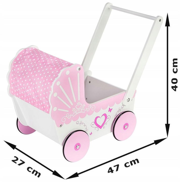 Zamień zabawę w spacer i spraw, by każda chwila była pełna uśmiechu i przygód z naszym pięknym drewnianym wózkiem dla lalek!