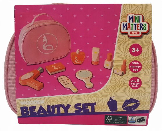Dzieci lubią naśladować rodziców - także w robieniu makijażu i przygotowywaniu się do wyjścia. Dzięki kompletowi małej piękności możesz bez obaw przekazać swojej pociesze kosmetyki, perfumy, a nawet lusterko czy suszarkę. Są one wykonane z doskonałej jakości drewna, które co więcej zostało pozyskane w odpowiedzialny sposób. Świadczy o tym otrzymany przez zabawkę certyfikat FSC.