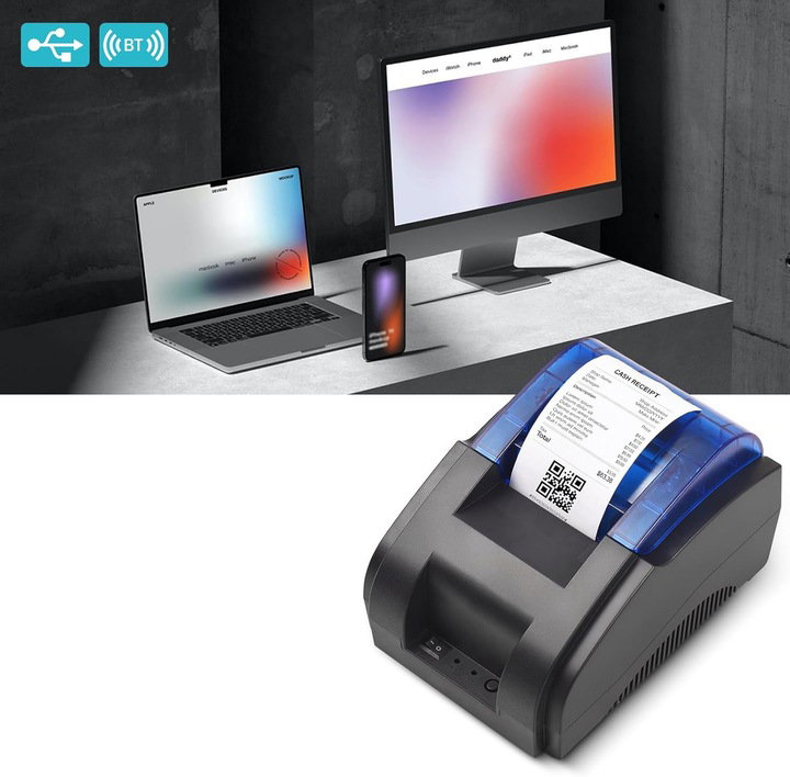 ✅ Biurkowa drukarka etykiet 58 mm: Zaprojektowana do paragonów o szerokości 58 mm