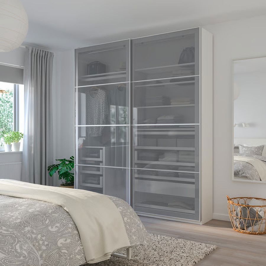 Gdy chcesz wyeksponować swoje ubrania i buty w środku – ale tylko odrobinę. Matowe szkło zapewnia dyskretny widok na rzeczy i tworzy wrażenie większej przestronności w porównaniu z panelami litymi.