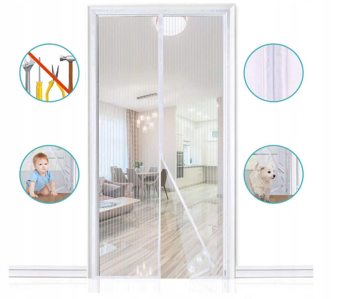 - ✴️CICHY I AUTOMATYCZNY – W magnetyczny pasek moskitiery wszyte są silne magnesy. Podczas przechodzenia, magnesy rozdzielają się, szczelnie zamykając magnetyczną zasłonę bez żadnych szczelin. Przezroczysta moskitiera jest oddychająca, dzięki czemu możesz cieszyć się latem nawet z kanapy