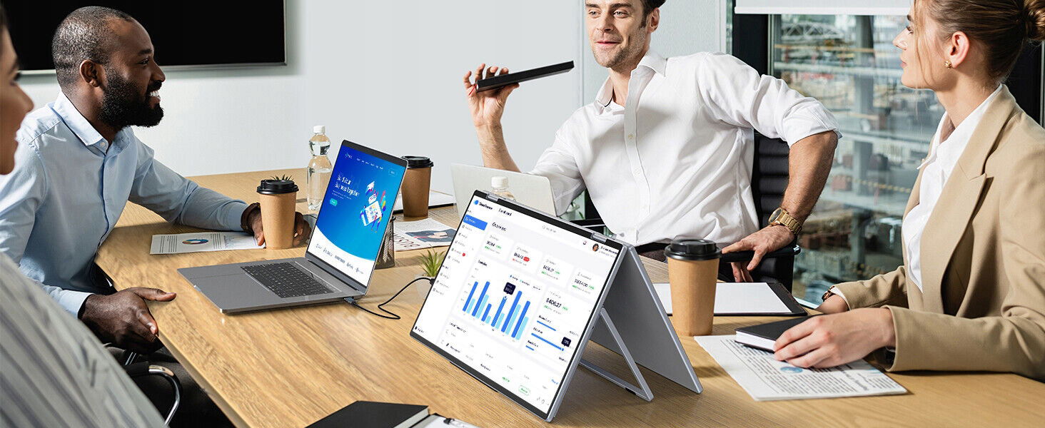 Składany monitor, po złożeniu, ma zaledwie grubość 22 mm, co odpowiada grubości laptopa, przez co są bardzo smukłe i nie zajmują miejsca w plecaku lub walizce.
