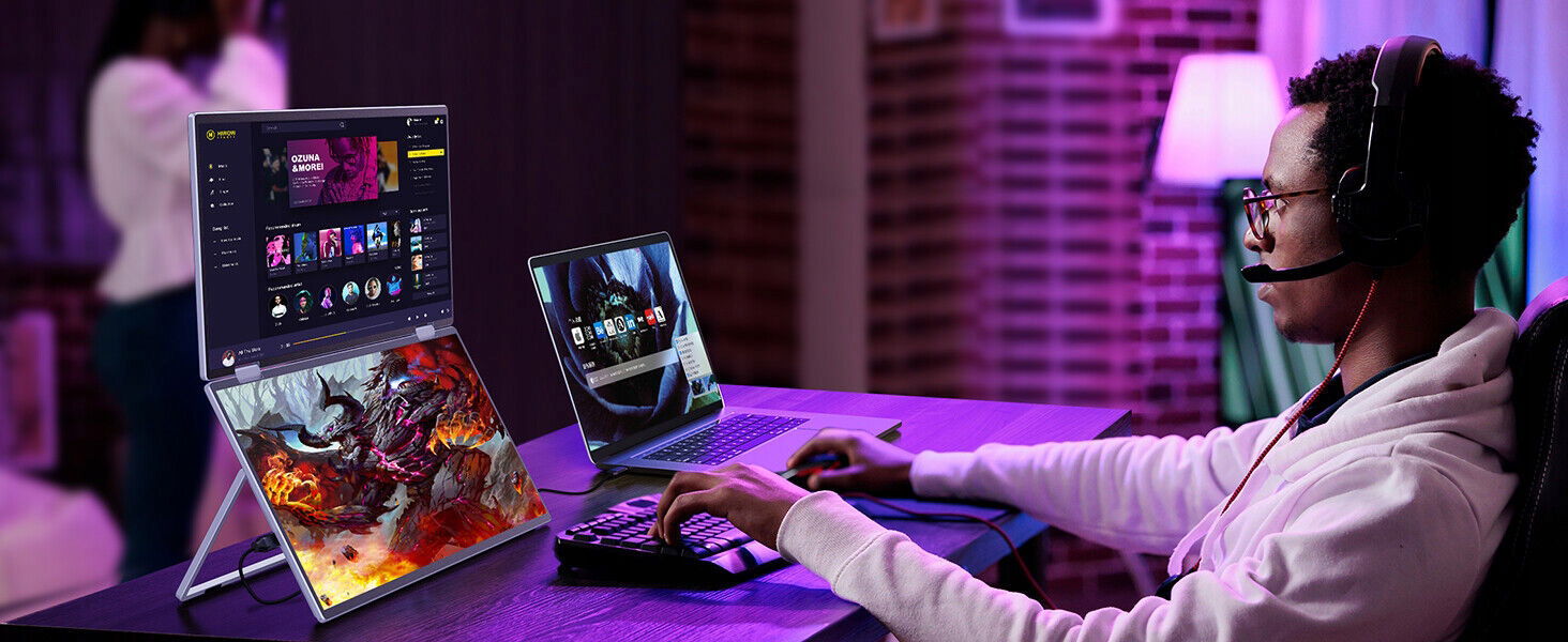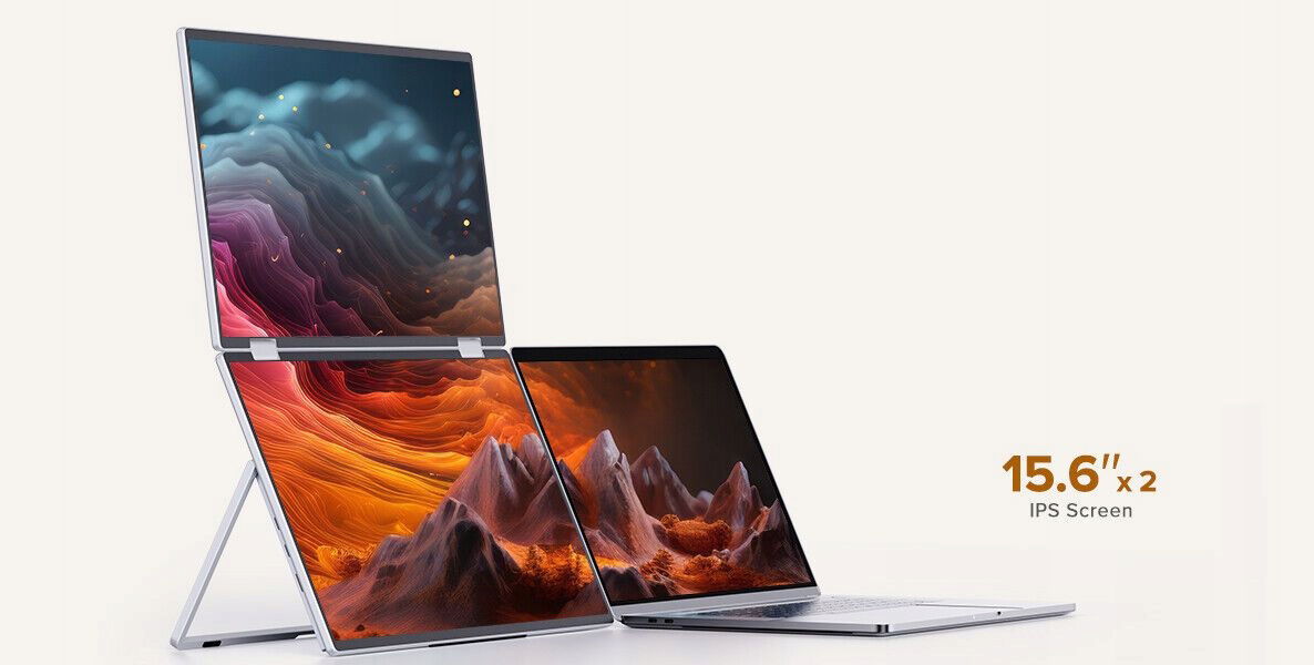 Składany monitor o przekątnej 15,6 cala ma zaledwie 22 mm, a dwa ekrany mają tylko grubość laptopa, przez co są bardzo smukłe i nie zajmują miejsca w plecaku.