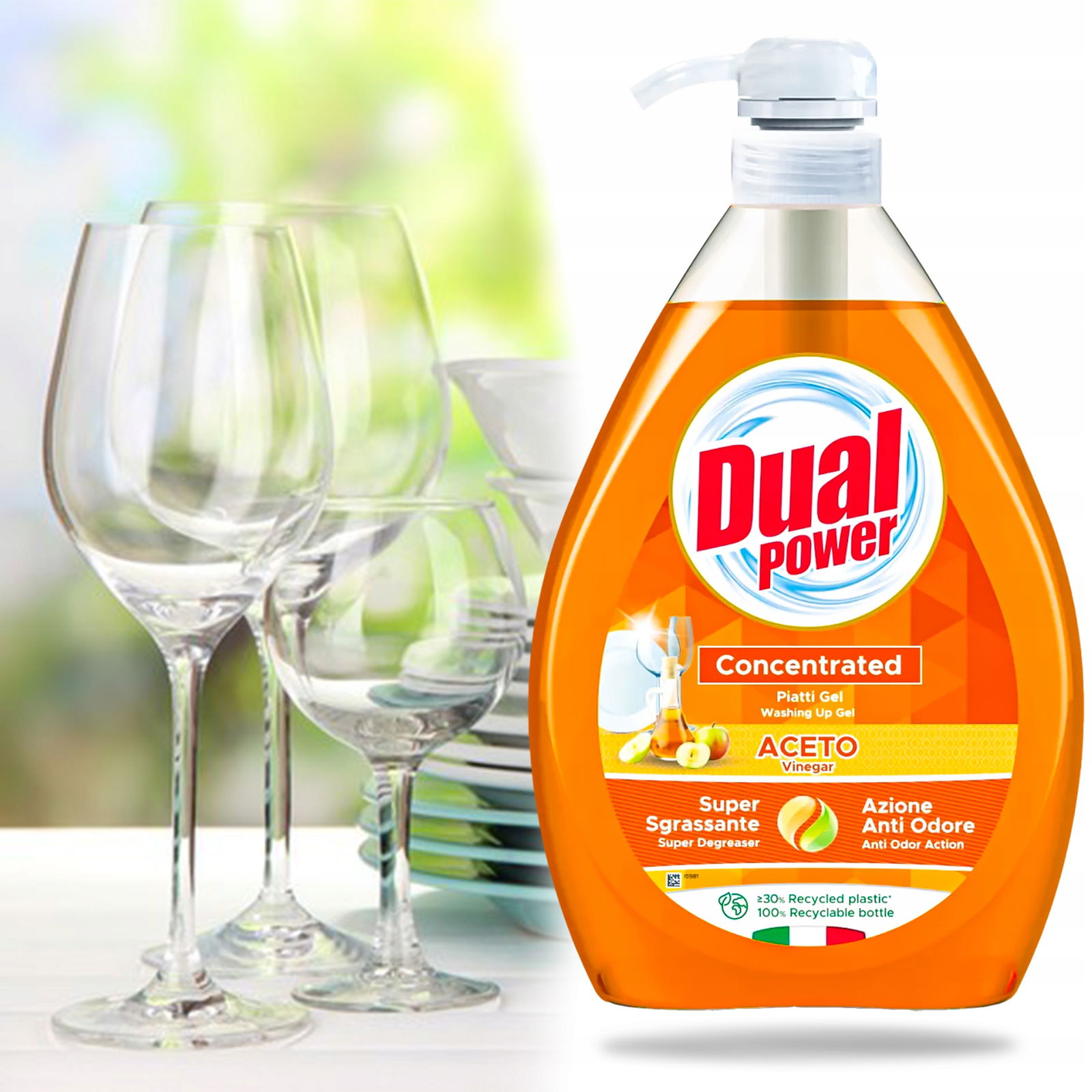Formuła Dual Power gwarantuje nie tylko wyjątkową wydajność w usuwaniu brudu, ale jest również łagodna dla skóry oraz przyjazna dla środowiska. Jako ekologiczna alternatywa, płyn nie zawiera szkodliwych substancji chemicznych ani syntetycznych zapachów, co czyni go bezpiecznym dla całej rodziny. Składnik octowy działa jako naturalny dezodorant, eliminując nieprzyjemne zapachy zamiast je maskować, co sprawia, że kuchnia po każdym myciu emanuje świeżością.