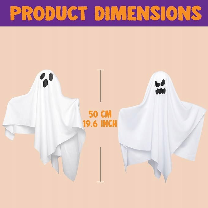 Wspaniała dekoracja na Halloween. Nasze dekoracje na Halloween z latającymi duchami są częścią naszych uroczych dekoracji zewnętrznych. Ten wiszący duch na Halloween to zestaw dekoracji w postaci duchów, który jest idealnym dodatkiem do Twojego drzewa, miejsca pracy, domu, podwórka lub ogrodu. Zawiera 6-elementowy biały duch o przekątnej 19,6 cala z 2 różnymi twarzami, po 3 z każdej twarzy.