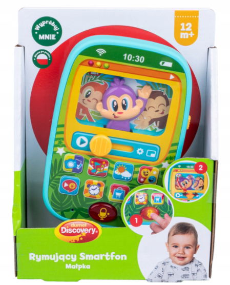 Rozpocznij swoją przygodę z telefonem od rymującego smartfonika, w którym zabawna małpka pochowała mnóstwo tematycznych rymowanek i realistycznych odgłosów.
