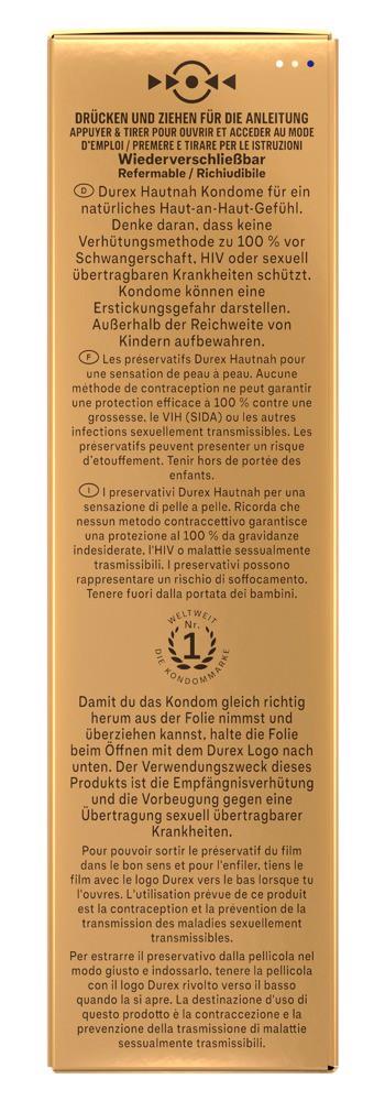 Ekstremalnie cienkie prezerwatywy Hautnah marki Durex zapewniają uczucie "skóra do skóry" i maksymalne doznania. Pokryte są lubrykantem na bazie silikonu, co zapewnia wyjątkową gładkość. W porównaniu do tradycyjnych prezerwatyw cylindrycznych, innowacyjny anatomiczny kształt Easy-on prezerwatyw Durex oferuje więcej przestrzeni w odpowiednich miejscach, co ułatwia zakładanie i zdejmowanie, zapewniając komfortowe dopasowanie i intensywne doznania.