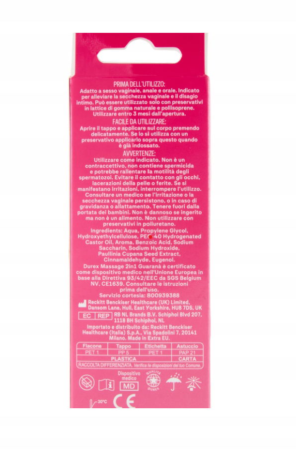 Żel stymulujący intymność Guarana jest kompatybilny ze wszystkimi prezerwatywami i zabawkami erotycznymi Durex, zapewniając bezpieczną i intensywną przyjemność