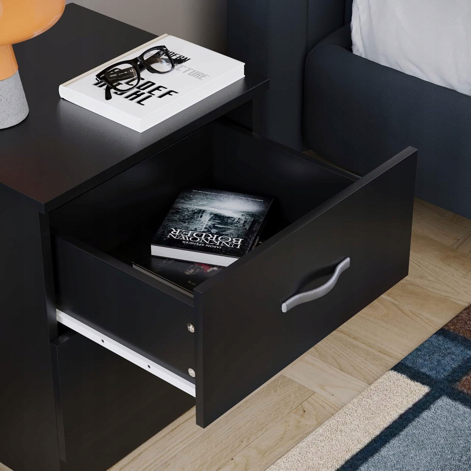 Ta szafka doskonale sprawdzi się jako mebel przy łóżku – pomieści książkę, lampkę nocną, ładowarkę, okulary i wszystkie drobiazgi, które chcesz mieć pod ręką przed snem.
