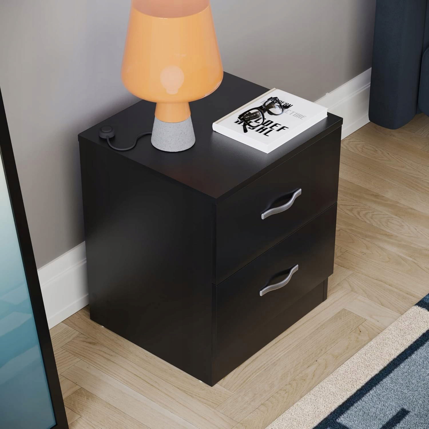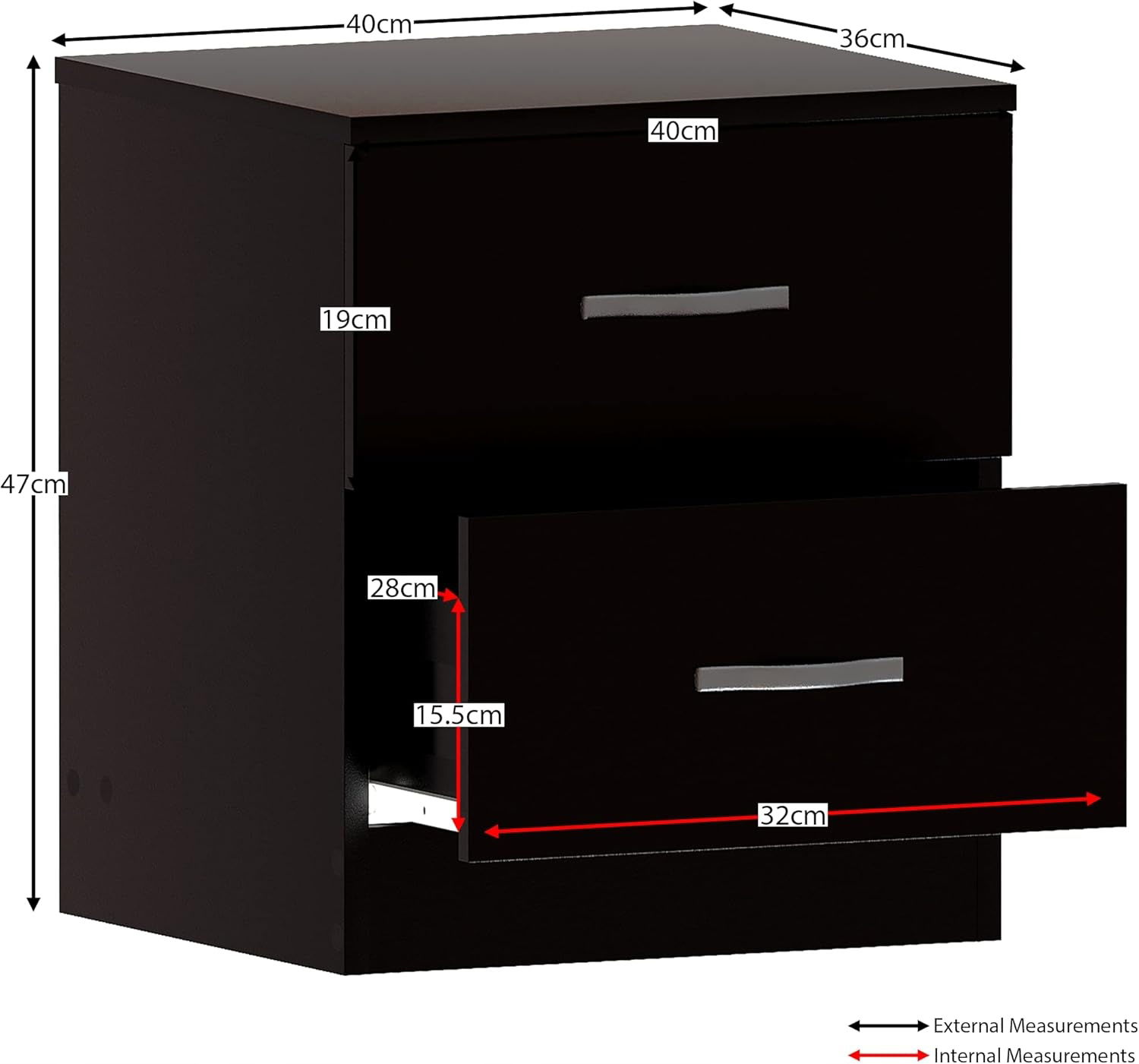 DUŻA CZARNA SZAFKA NOCNA Z 2 SZUFLADAMI 40 x 36 x 47cm Vida Designs