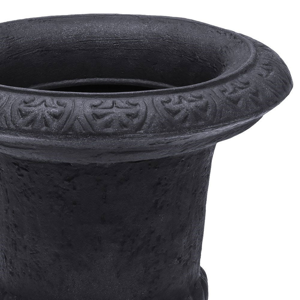 Doniczka do użytku zewnętrznego. Swoim wyglądem imituje kamień i jest utrzymana w modnym ciemno szarym kolorze. Kielichowy kształt donicy pozwoli stworzyć magiczny klimat przed domem, w ogrodzie lub na tarasie. Dzięki donicy możemy w efektowny sposób wyeksponować ulubione rośliny, kwiaty i zioła. Użyte materiały pozwolą na łatwe w utrzymanie czystości, możemy wyczyścić ją przy użycia węża ogrodowego.