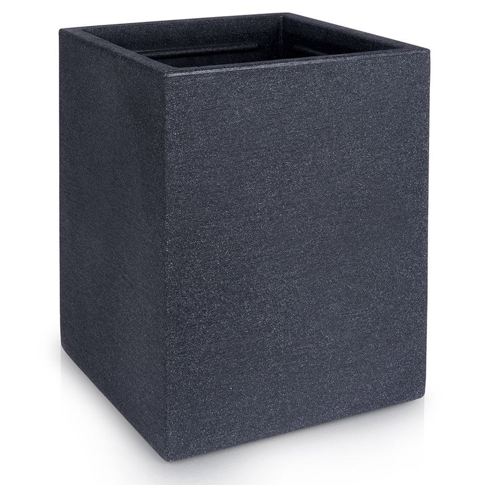 Duża doniczka do użytku zewnętrznego. Swoim wyglądem imituje kamień i jest utrzymana w modnym ciemno szarym kolorze. Dzięki osłonce możemy w efektowny sposób wyeksponować ulubione rośliny, kwiaty i zioła. Dzięki użytemu materiałowi będzie łatwa w utrzymaniu czystości, możemy wyczyścić ją przy użycia węża ogrodowego.
