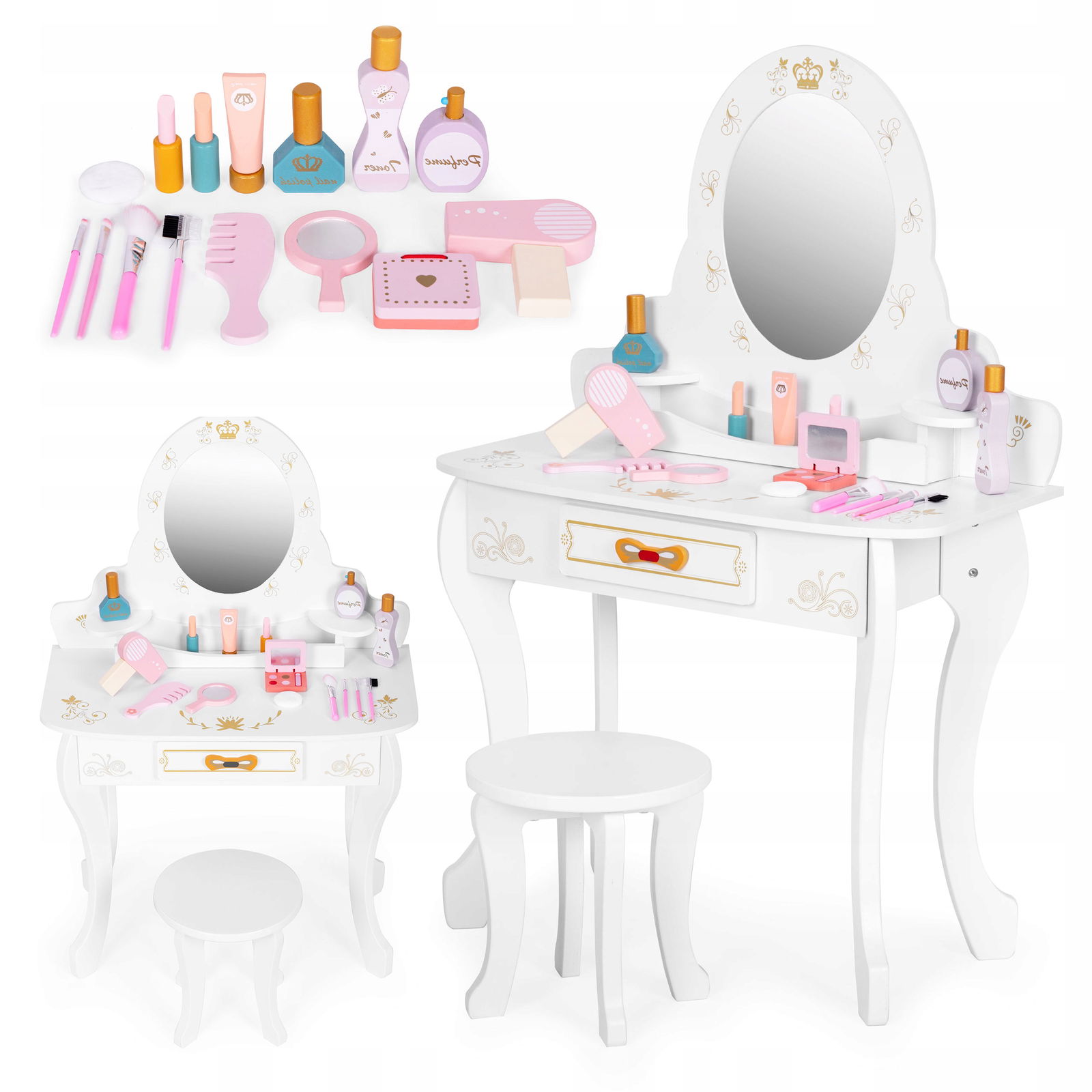 Duża Drewniana Toaletka dla Dzieci z Lustrem Krzesełko Dodatki Jakość