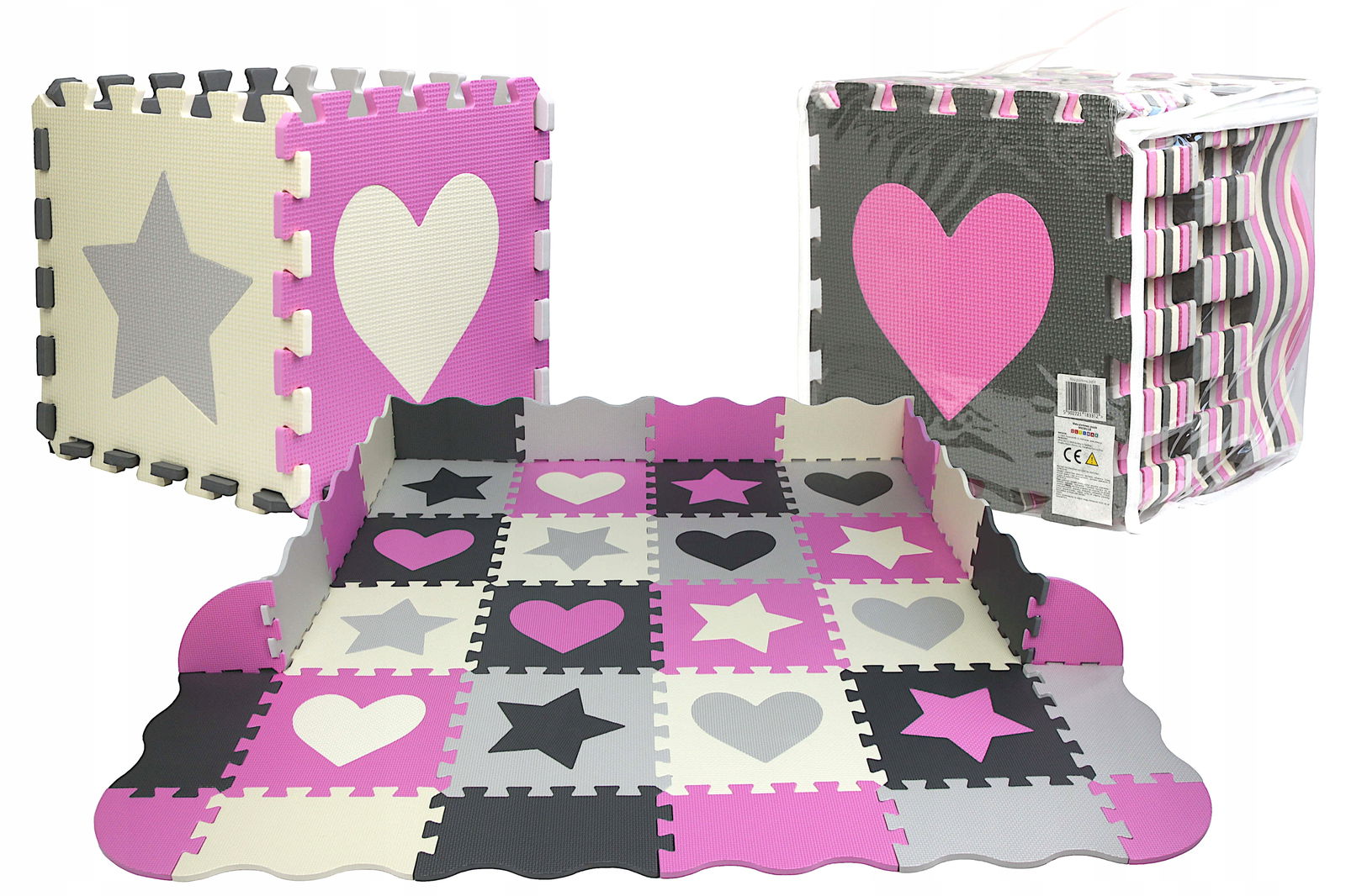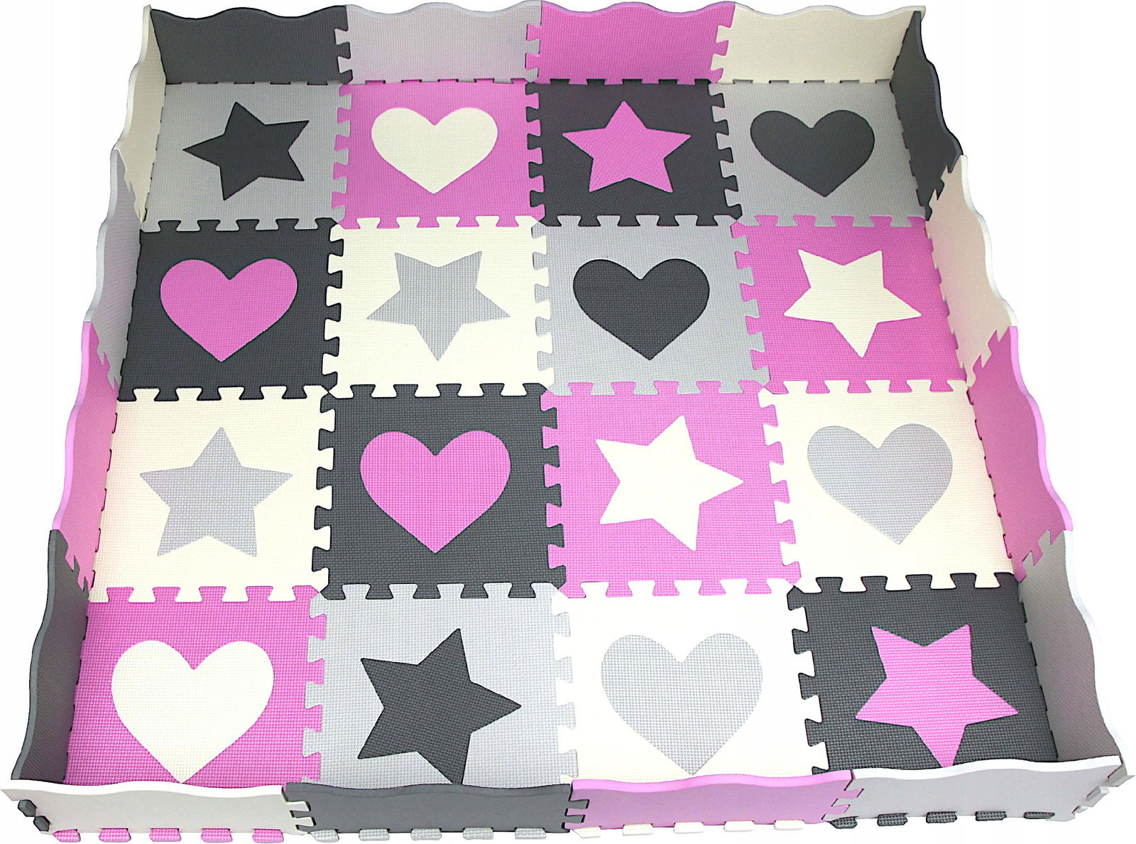 Duża Mata Edukacyjna Piankowa Puzzle Kojec 150x150 Różowa