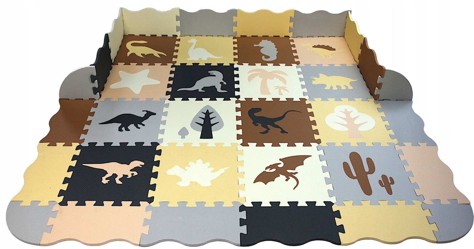 Duża Mata Piankowa XXL Kojec PUZZLE 3w1 Dinozaury