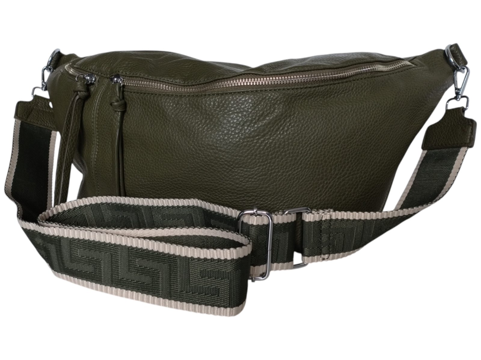Duża Nerka Damska na Ramię, Saszetka - Zielona Torebka na Szerokim Pasku