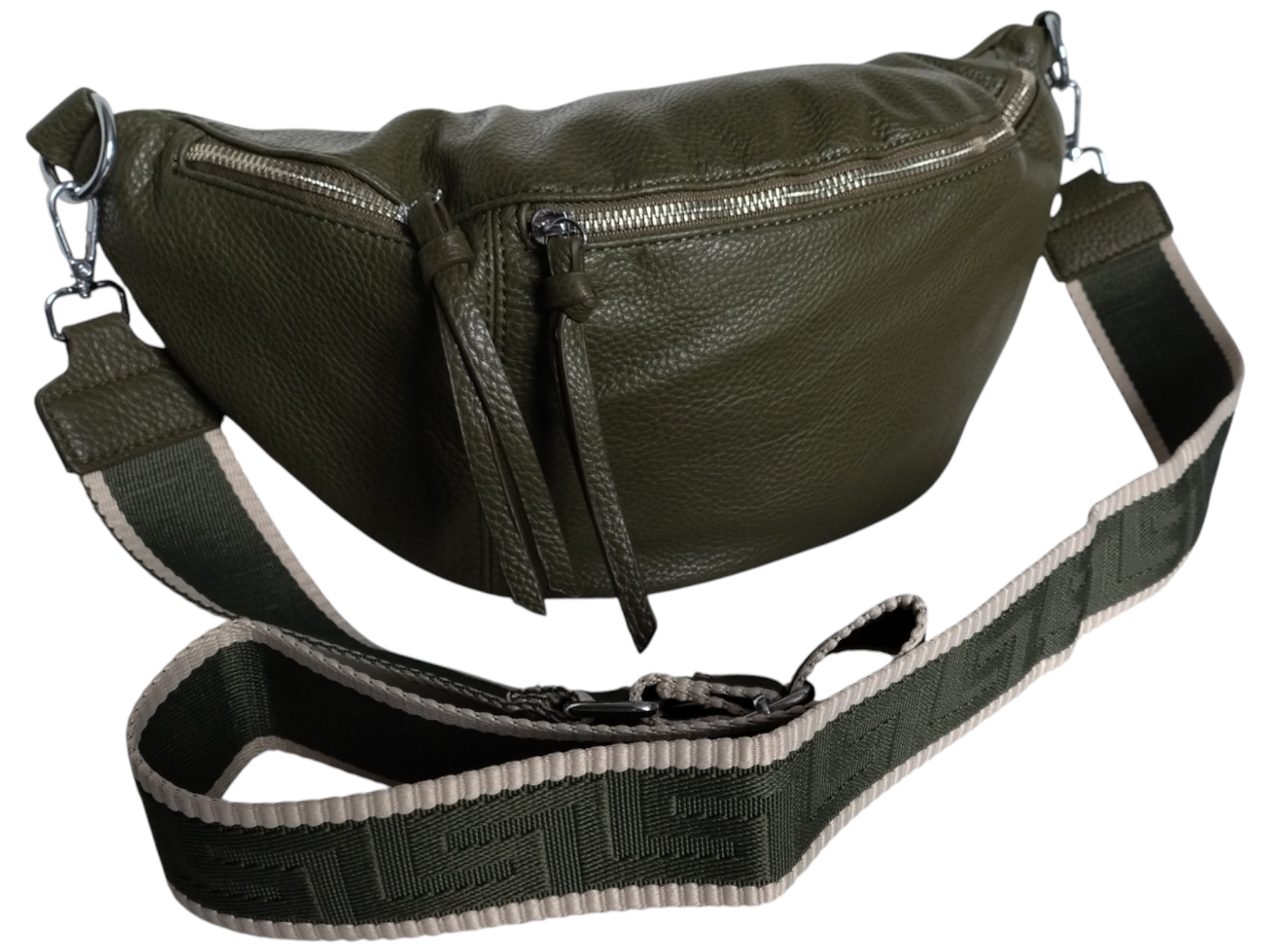Duża Nerka Damska na Ramię, Zielona Torebka Damska, Saszetka (2 PASKI)