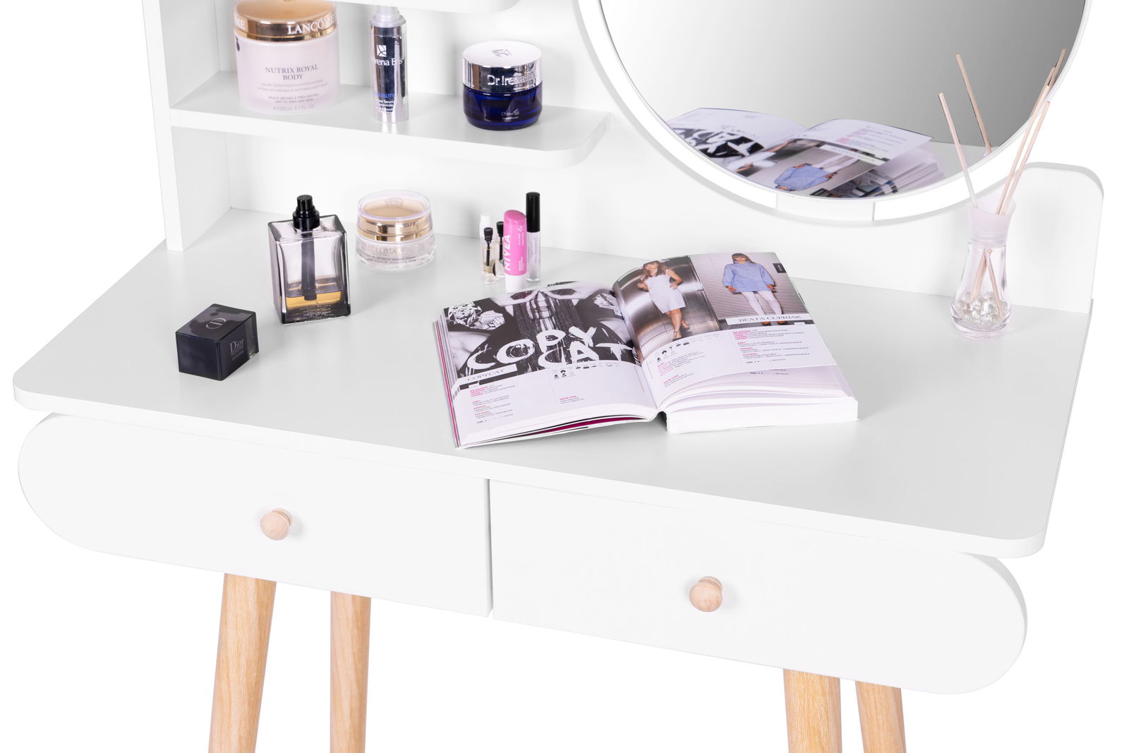 - Dodatkowo toaletka pomieści wszystkie niezbędne drobiazgi i akcesoria do makijażu.