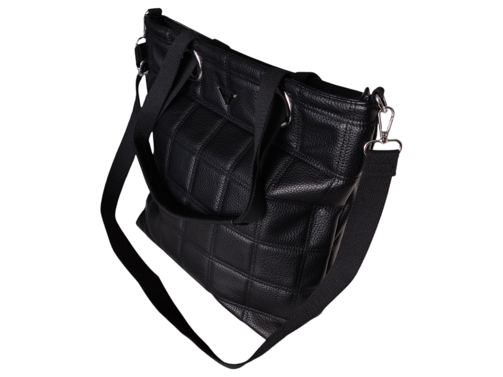 Informacja o Bespieczeństwie: Torebka do użytku codziennego. Nieodpowiednia dla dzieci – ryzyko uduszenia / skaleczenia małymi elementami i paskami. Używać zgodnie z przeznaczeniem. Nie przeciążać. Trzymać z dala od ognia i wysokiej temperatury. Czyszczenie wilgotną miękką ściereczką; nie prać; nie używać rozpuszczalników