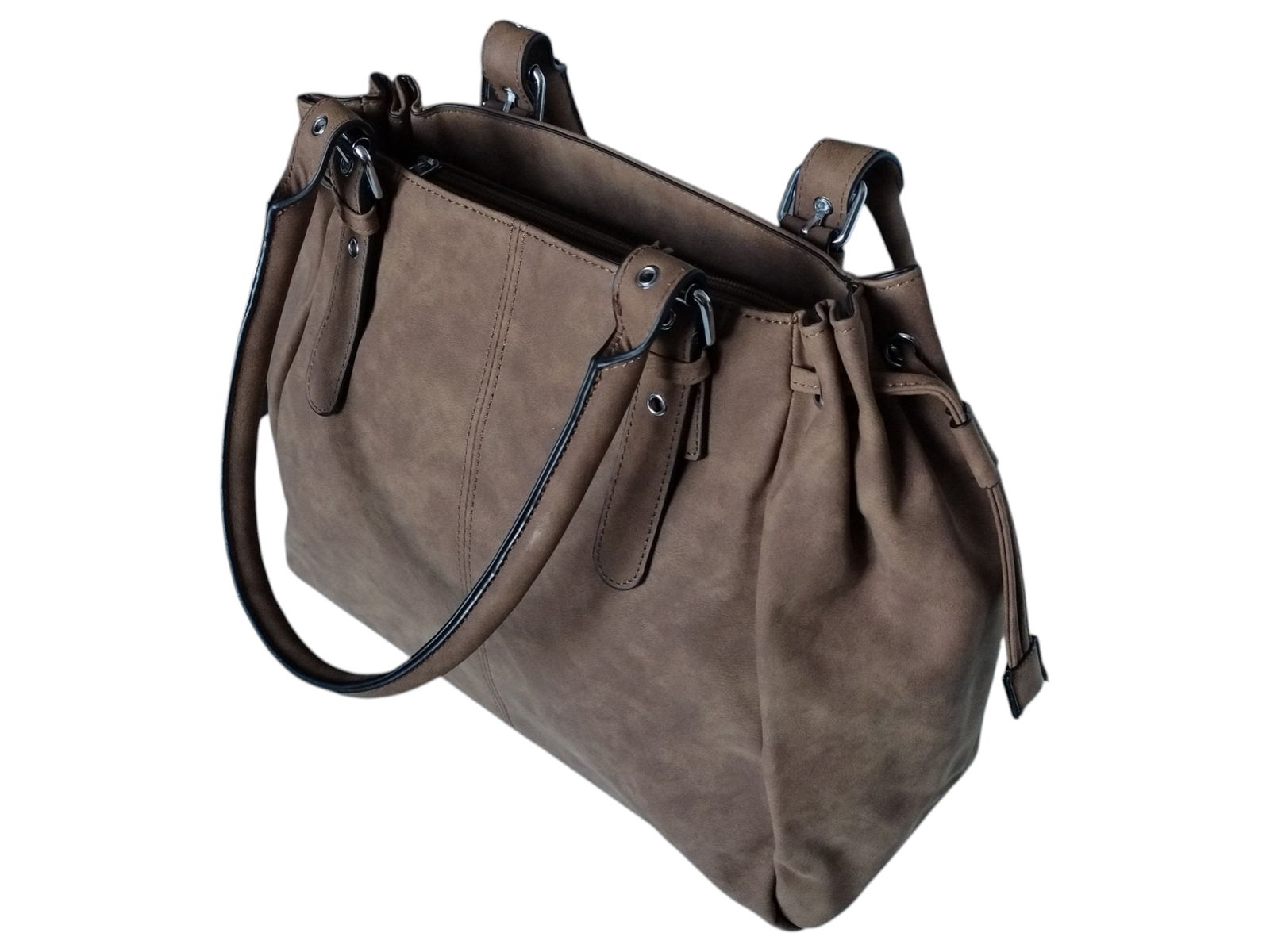 Duża Shopper, Torebka Damska na Ramię, Praktyczna Modna Torba, Szaro-Beżowy
