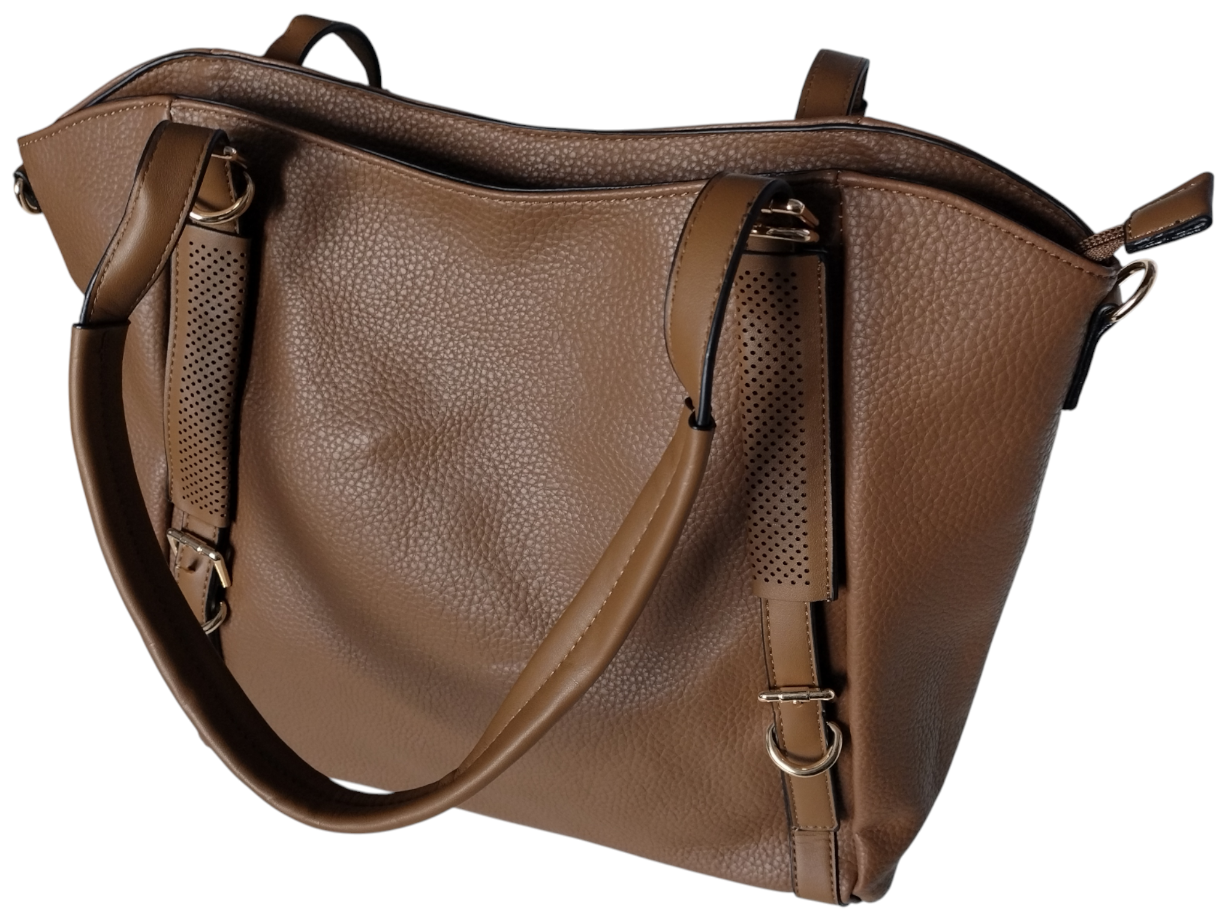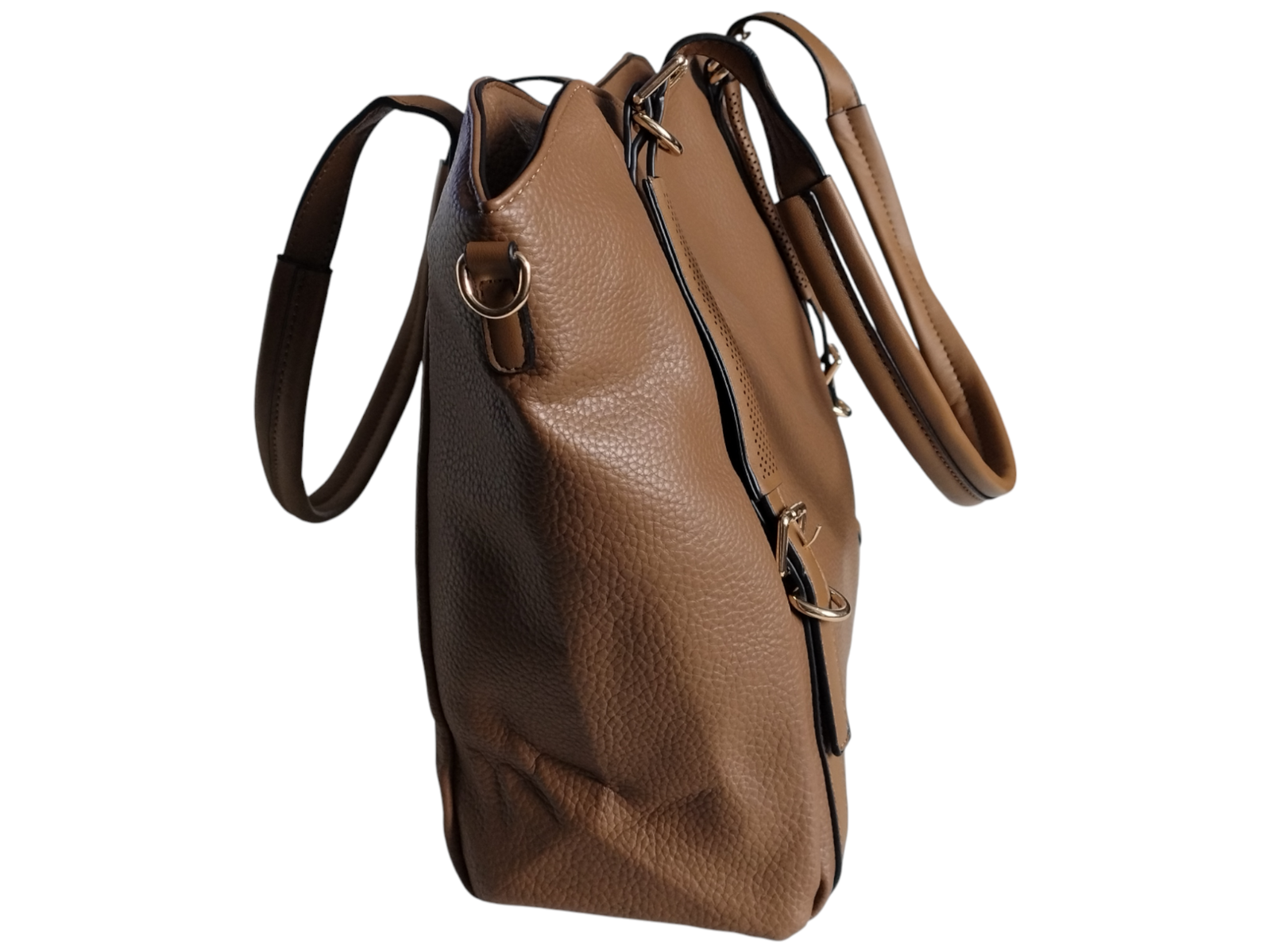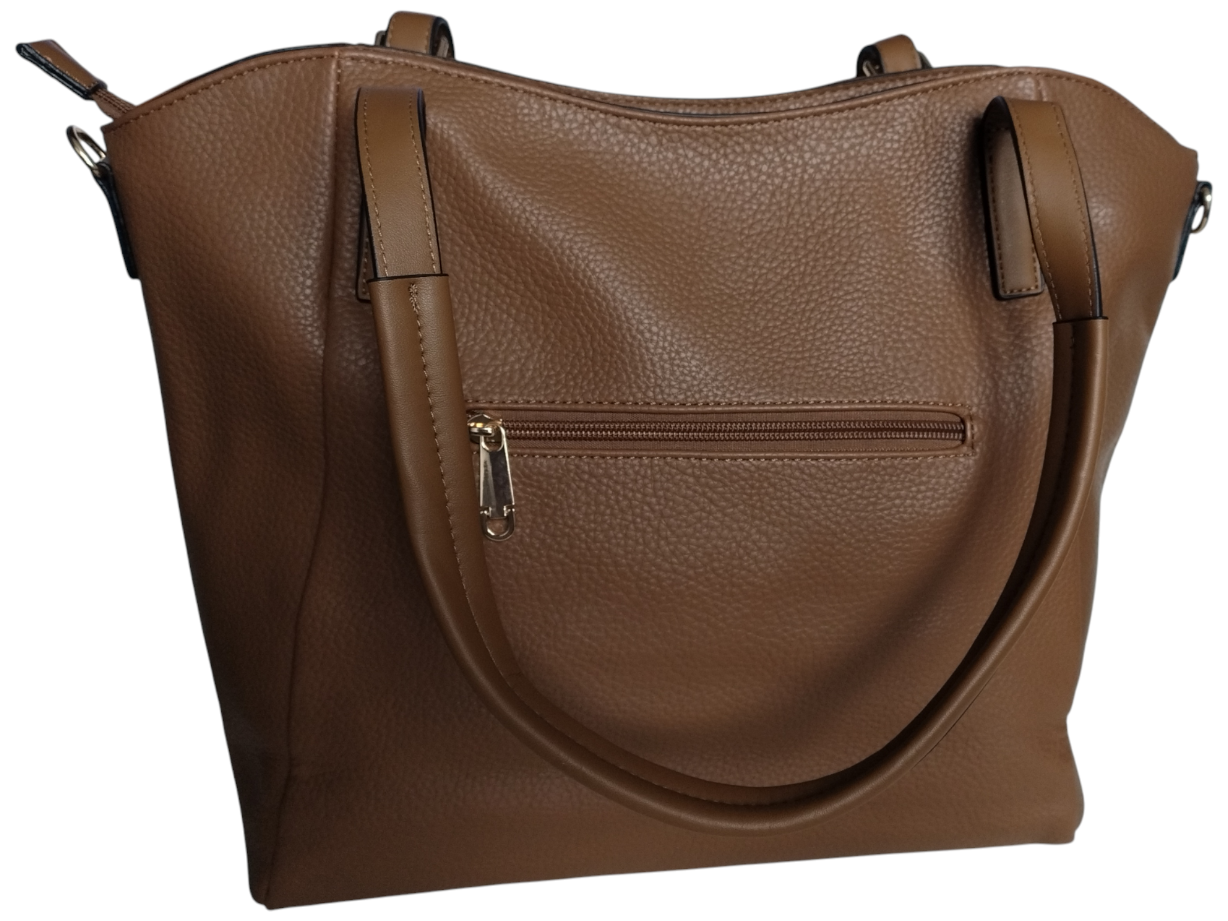 Duża Shopperka Damska, Miejska, Eko Skóra Groszkowa Brąz Camel Złote Okucia