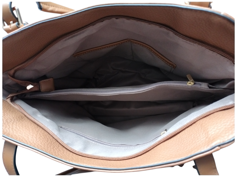 Informacja o Bespieczeństwie: Torebka do użytku codziennego. Nieodpowiednia dla dzieci – ryzyko uduszenia / skaleczenia małymi elementami i paskami. Używać zgodnie z przeznaczeniem. Nie przeciążać. Trzymać z dala od ognia i wysokiej temperatury. Czyszczenie wilgotną miękką ściereczką; nie prać; nie używać rozpuszczalników