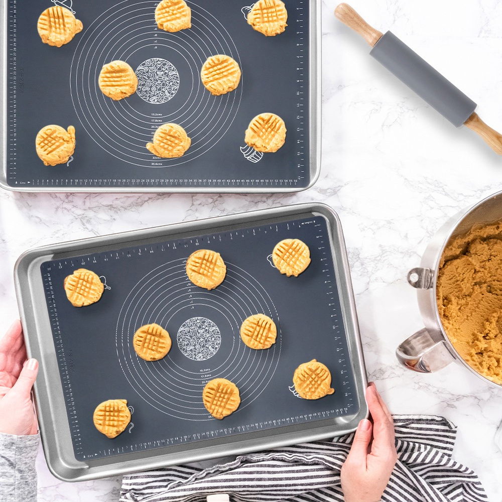 Kompaktowy i wygodny zestaw - Wałek posiada wygodne, obrotowe uchwyty, które stabilnie leżą w dłoni i zapewniają wygodne użytkowanie. Stolnicę można łatwo zwinąć lub złożyć, dzięki czemu zajmuje niewiele miejsca. Stolnica nadaje się do mycia w zmywarce do naczyń, odpowiednia do mikrofalówki, piekarnika a także zamrażarki.