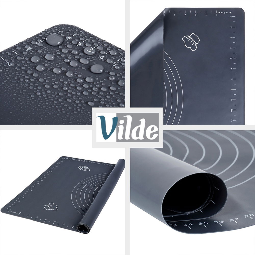 Nieprzywierająca powierzchnia - Silikonowa powierzchnia sprawia, że ciasto nie klei się do stolnicy ani wałka. Stolnica wyposażona jest w antypoślizgową powierzchnię, co zapobiega przesuwaniu się maty. Do rozwałkowania ciasta nie będzie potrzebna duża ilość mąki. Zestaw dzięki użytym materiałom jest odporny na wilgoć i odkształcenia, nie chłonie zapachów, szybko schnie.