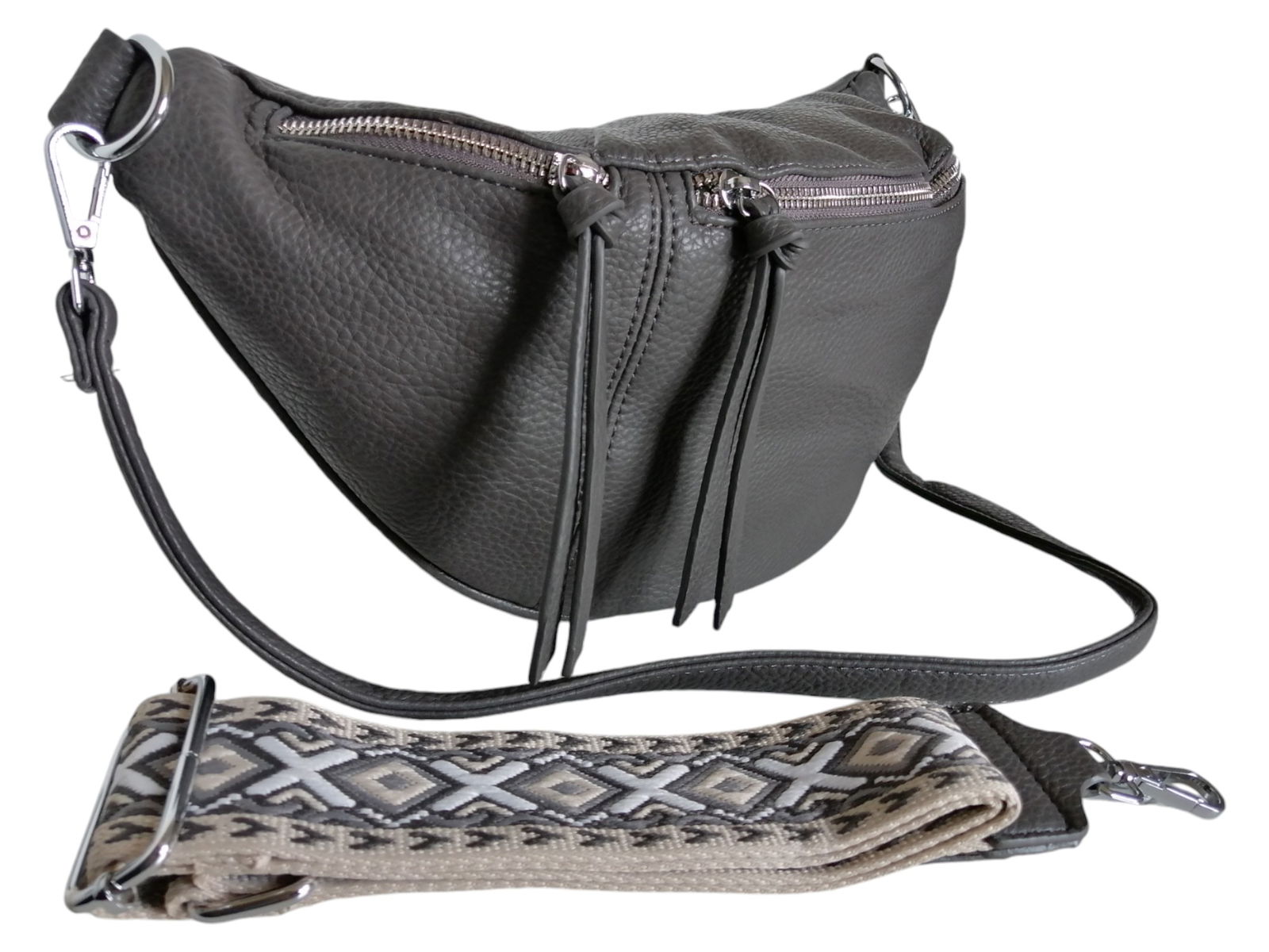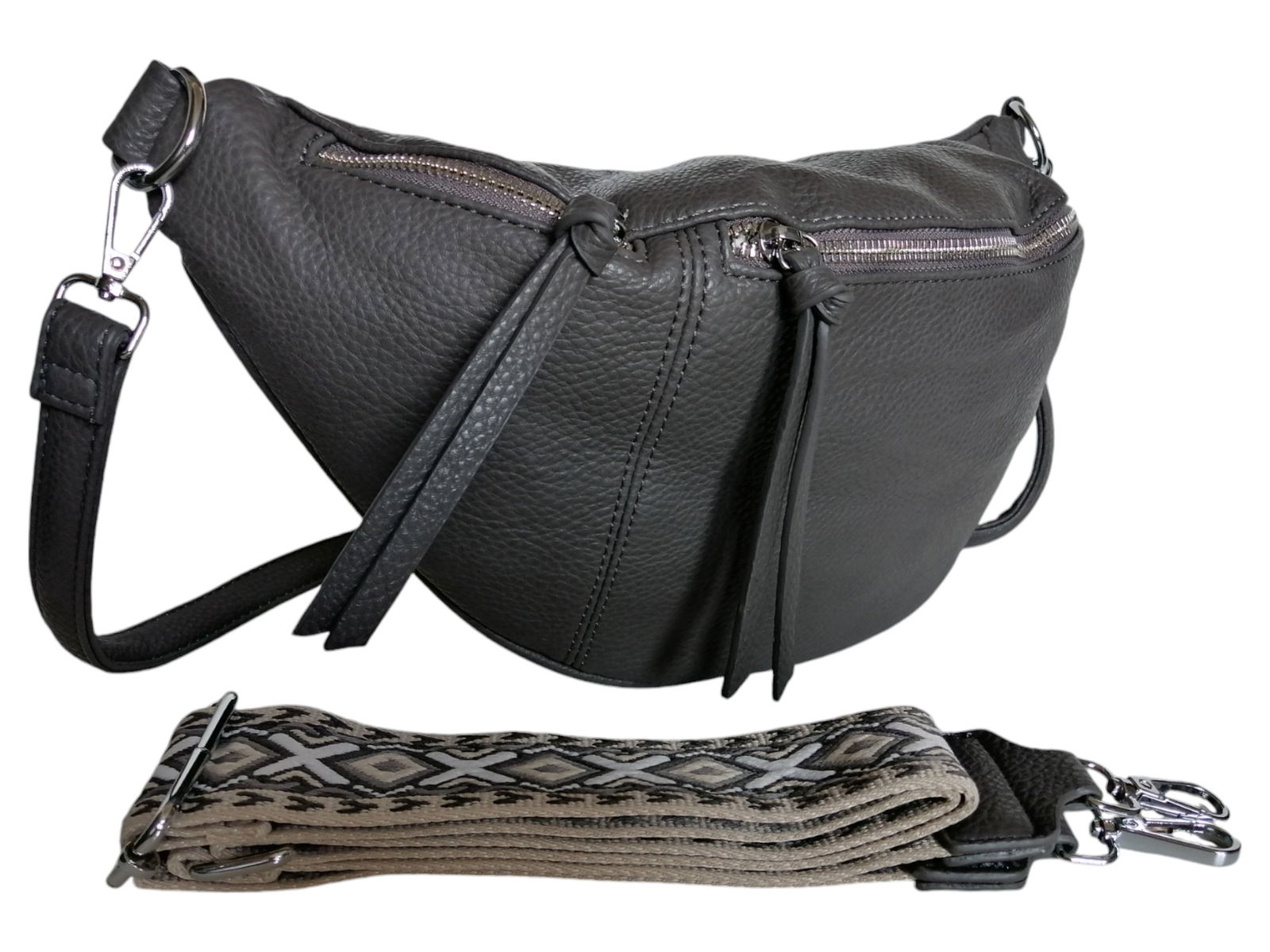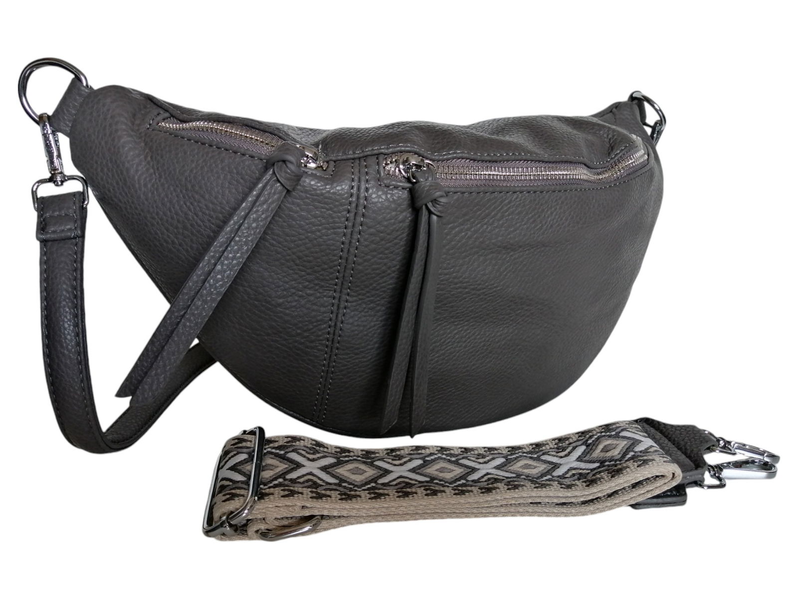 DUŻA TOREBKA SASZETKA, NERKA DAMSKA, SZARA TORBA NA RAMIĘ (2 PASKI)