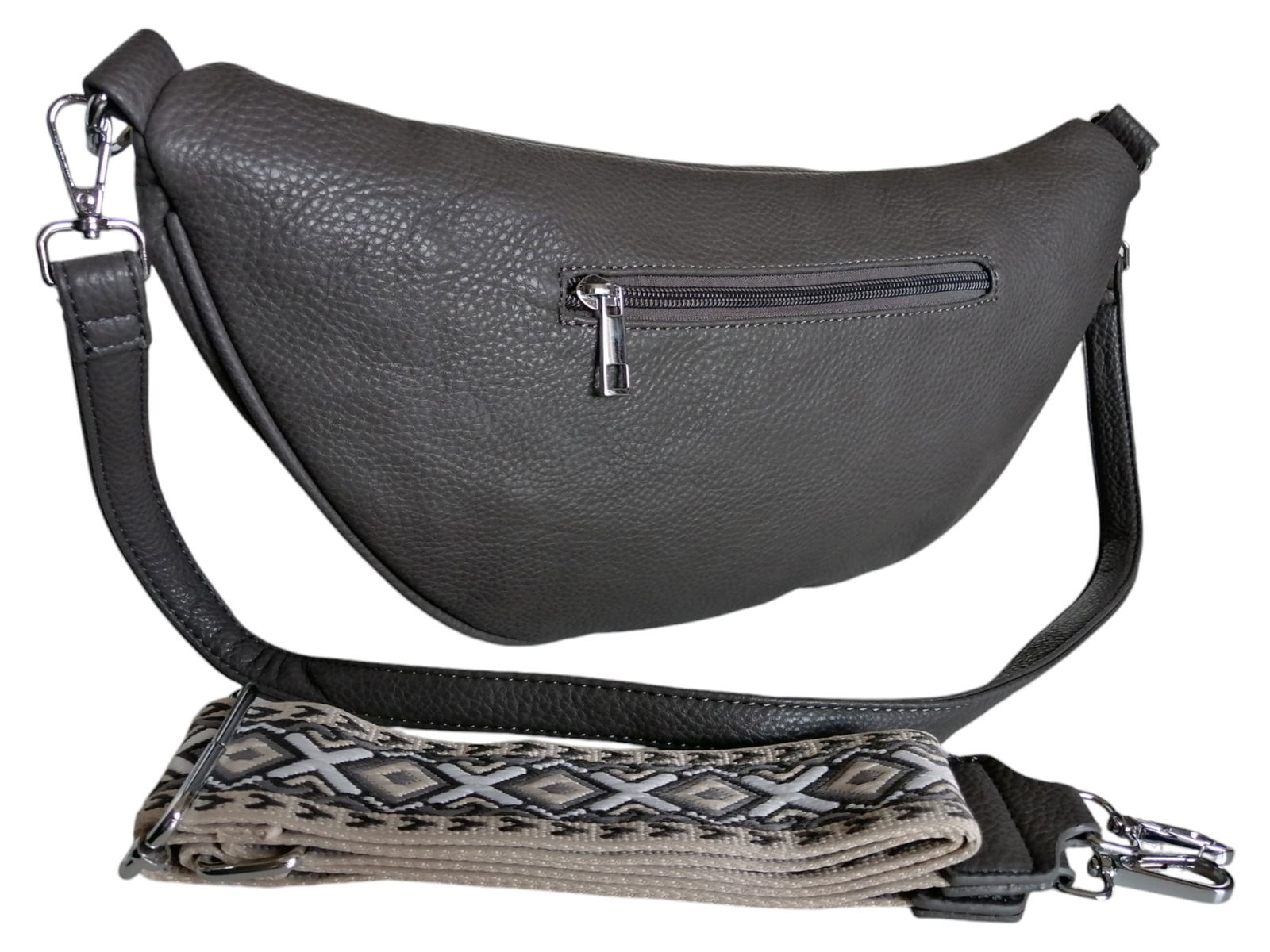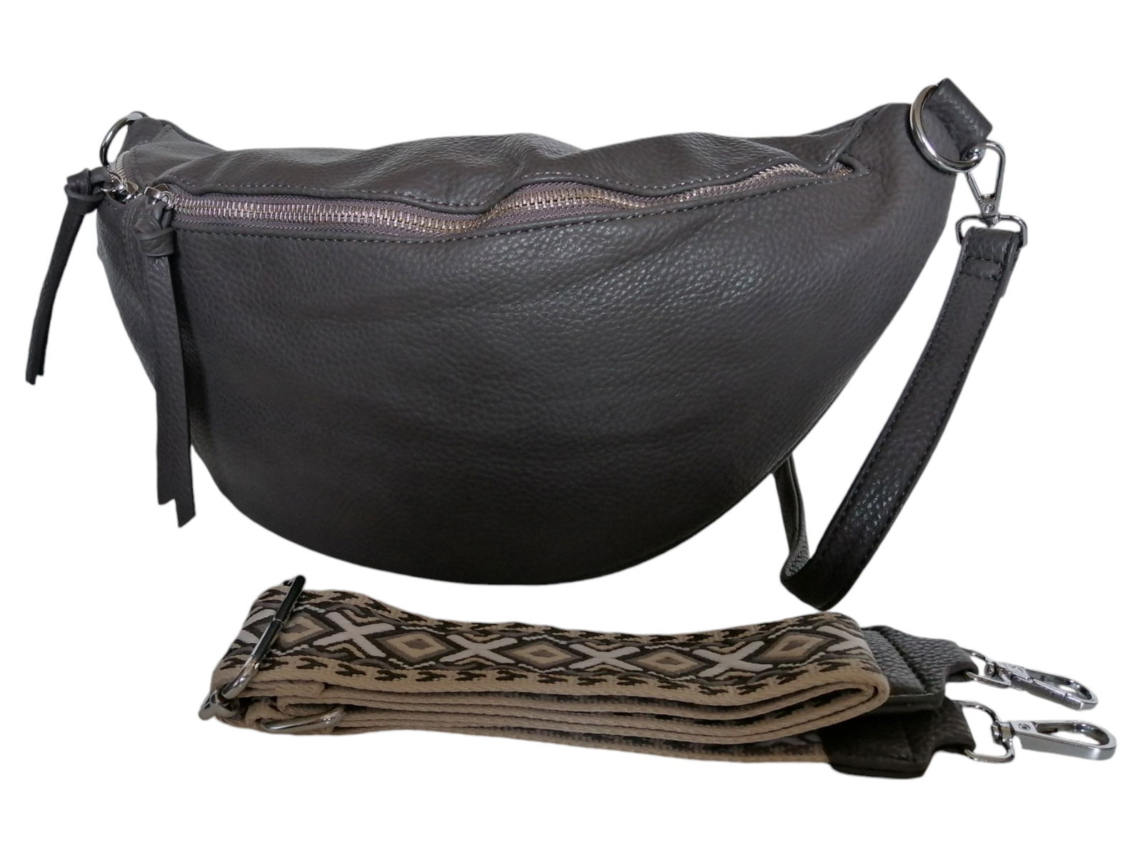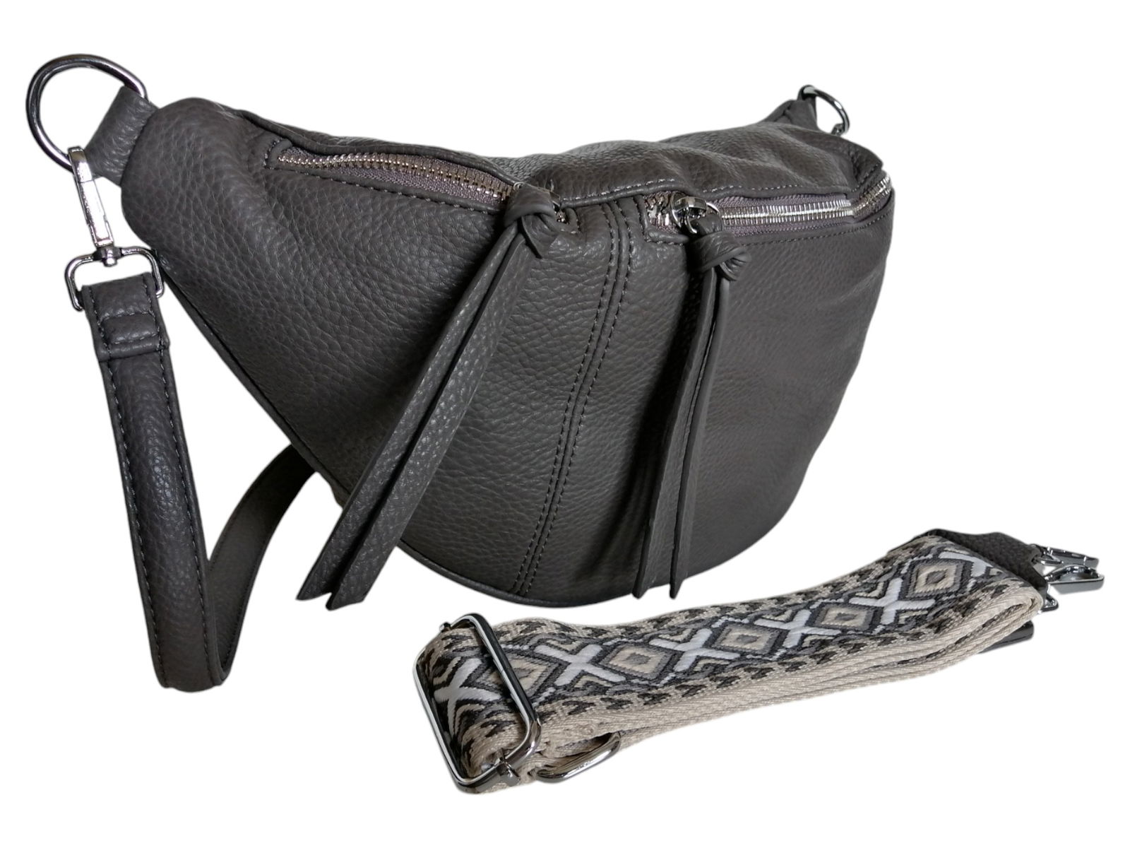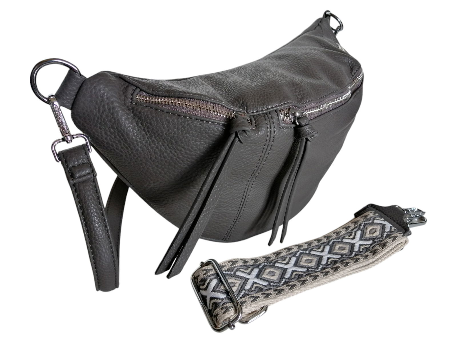DUŻA TOREBKA SASZETKA, NERKA DAMSKA, SZARA TORBA NA RAMIĘ (2 PASKI)