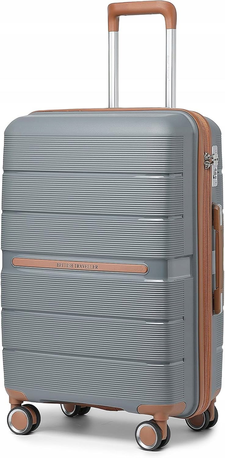 British Traveller Walizka z Twardą Obudową – Wytrzymała i Stylowa, SZARA (76 x 49,2 x 31 cm)
