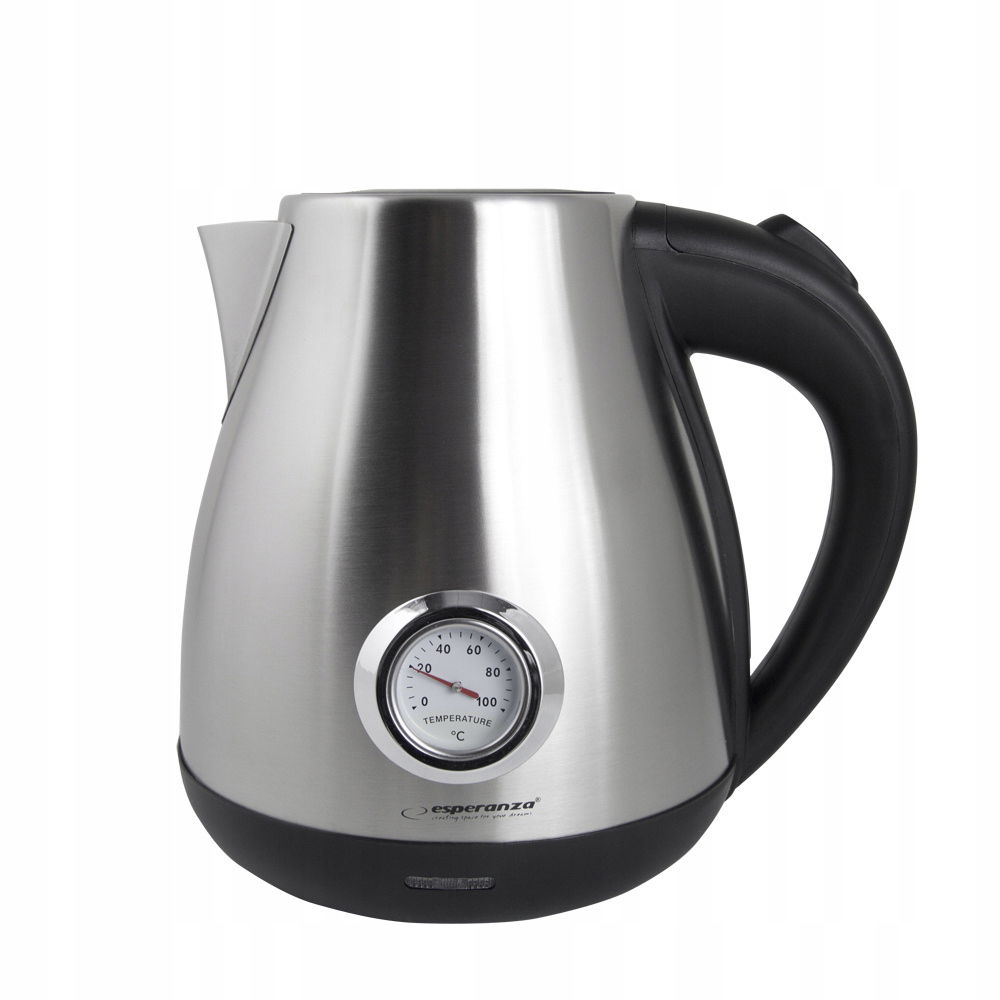 DUŻY CZAJNIK ELEKTRYCZNY bezprzewodowy Z TERMOMETREM 1,7L 2200W SREBRNY