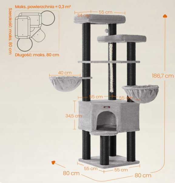 - Rodzaj: drapak wysoki|legowisko|maty do drapania|słupek do drapania|wieża