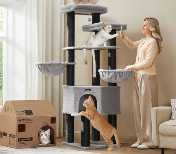 - ✴️Duży raj dla kotów: Ten drapak o wysokości 186,7 cm, z 5 poziomami i platformą o wymiarach 55 x 34 cm nadaje się do domów z kilkoma kotami lub dużymi kotami