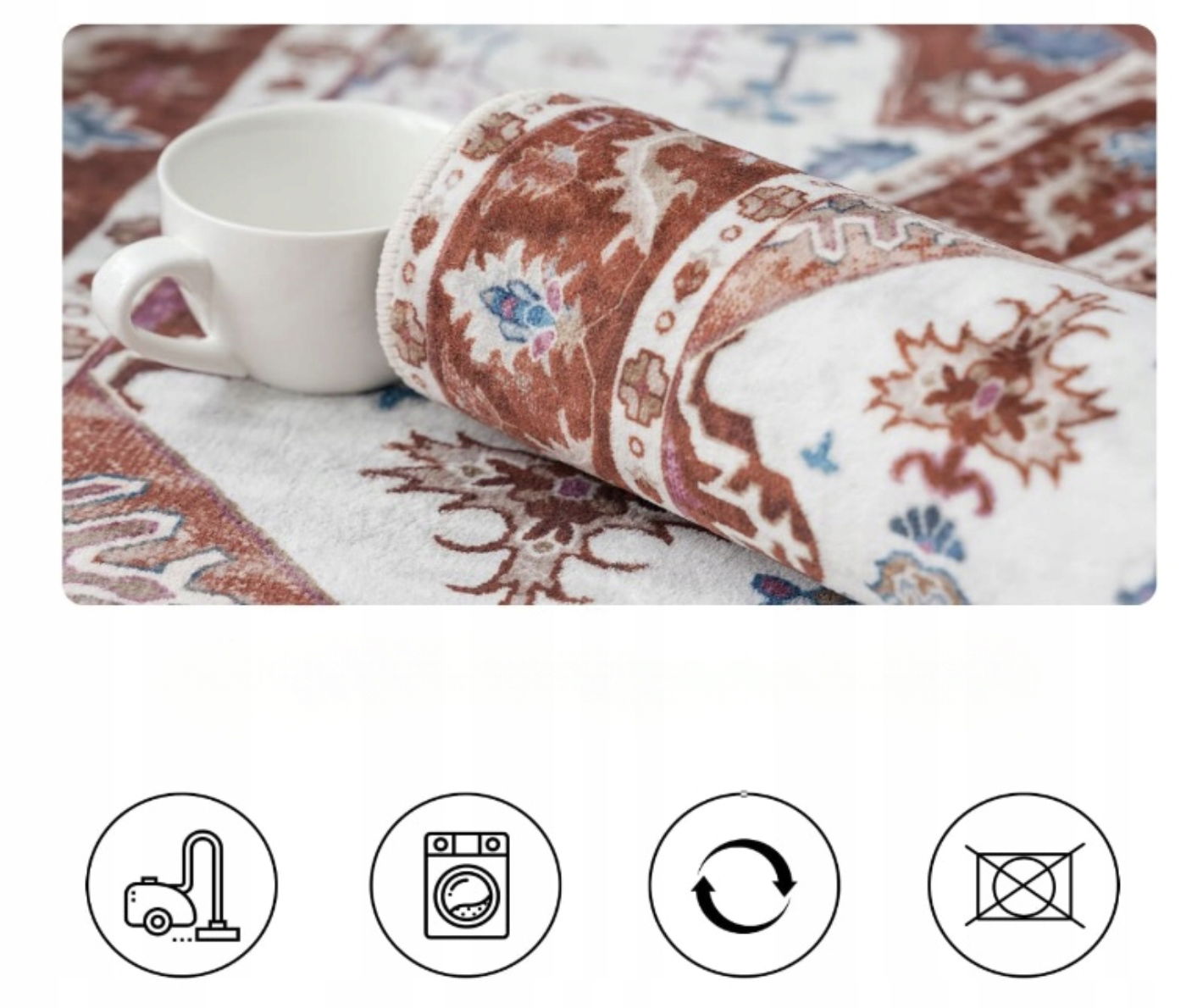 ✅ Antypoślizgowy spód – Zwiększa bezpieczeństwo, zapobiegając przesuwaniu się dywanu na gładkich powierzchniach.
