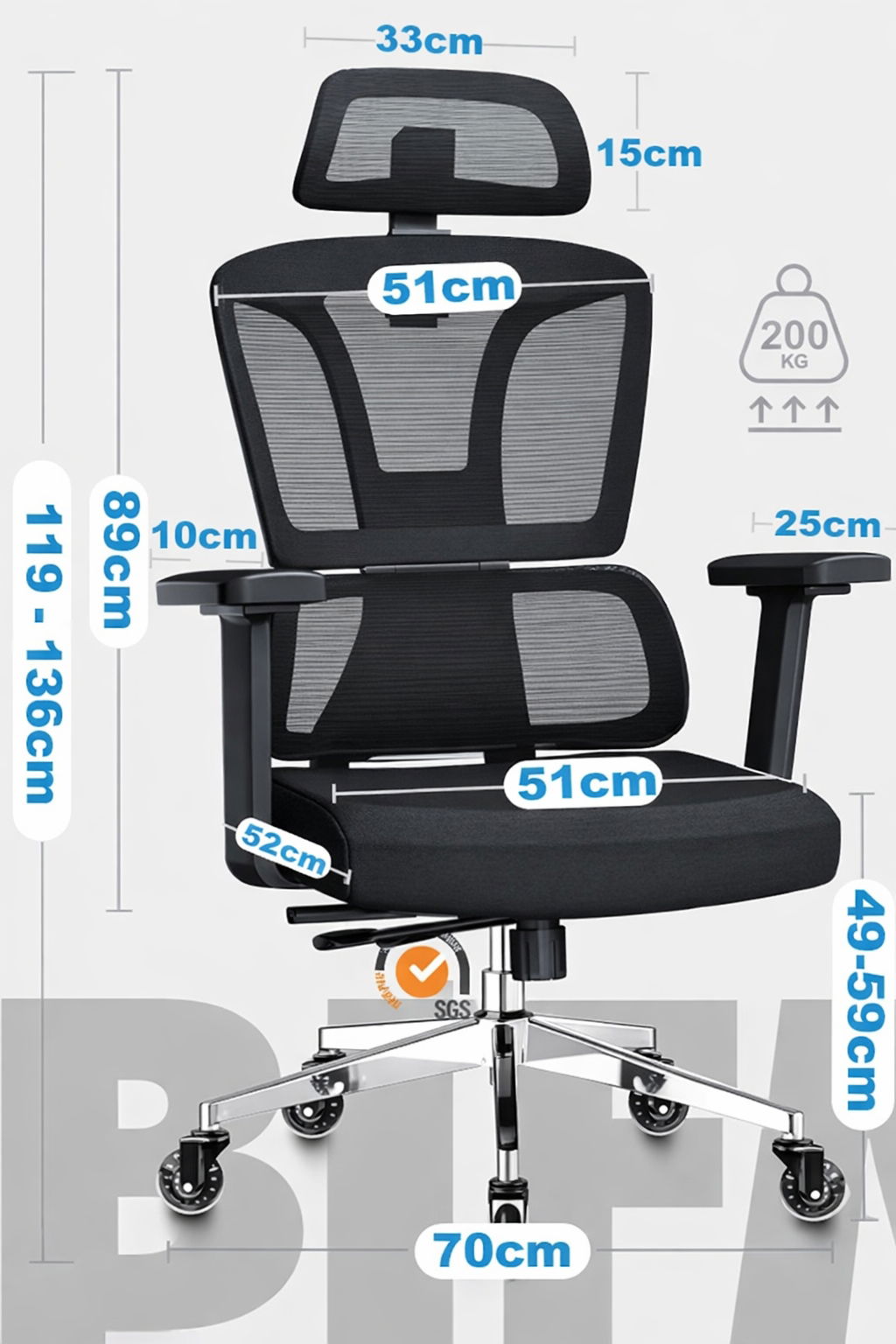 - ✴️【Udźwig 200 kg, wysokiej jakości komponenty】 To krzesło biurowe o udźwigu do 200 kg jest odpowiednie dla osób o wzroście od 155 cm do 200 cm. Wyposażone jest w certyfikowany przez BIFMA, przeciwwybuchowy podnośnik gazowy, który przeszedł 120 000 testów regulacji wysokości i 100 000 testów odporności na uderzenia, co gwarantuje stabilność i bezpieczeństwo. Podstawa wykonana jest z 3-milimetrowej, przeciwwybuchowej płyty stalowej, która o 50% przewyższa standardy branżowe i posiada certyfikat SGS gwarantujący maksymalną stabilność. Każdy element krzesła został poddany rygorystycznym testom, aby zapewnić użytkownikowi bezproblemową i bezpieczną pracę.