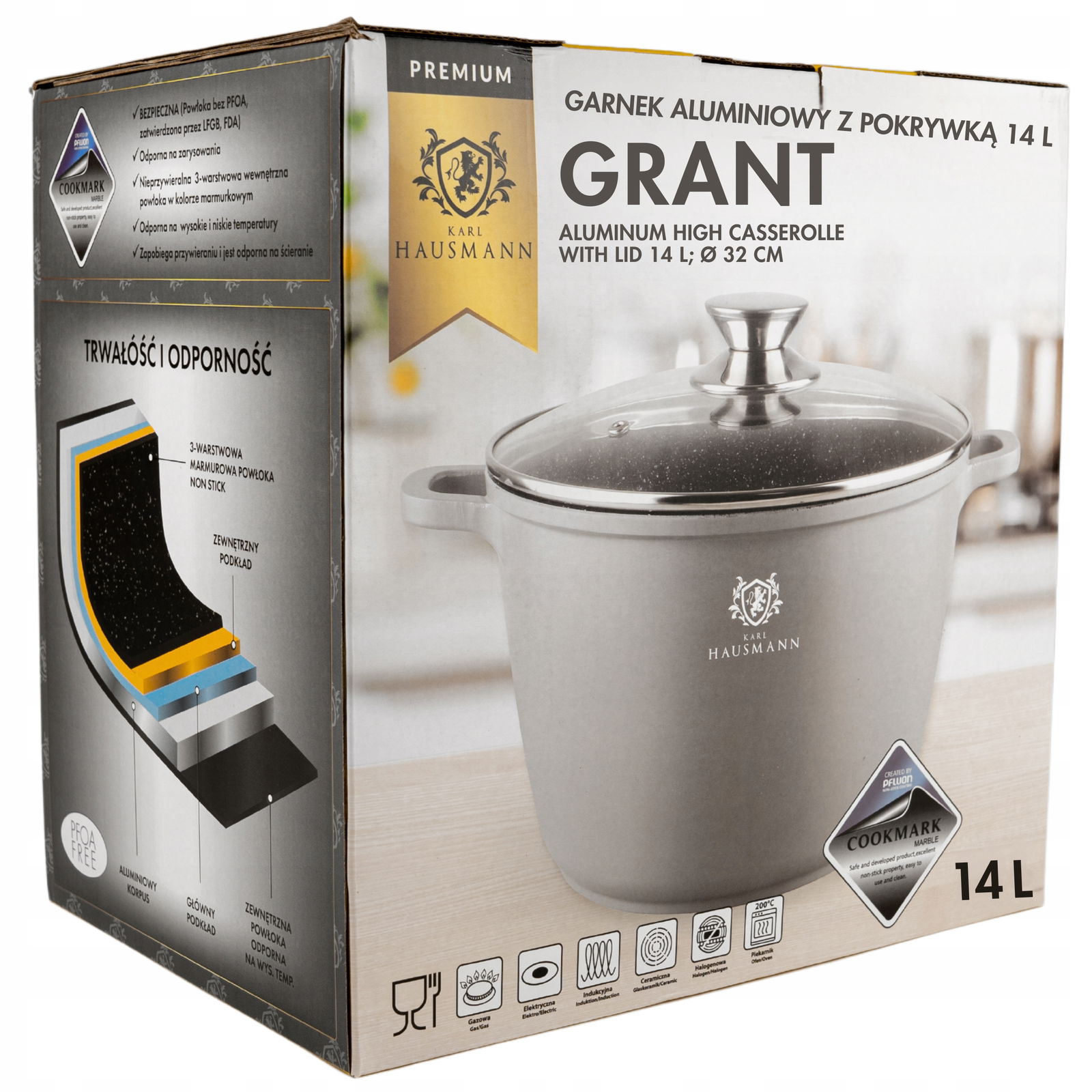 Garnek z serii GRANT jest kompatybilny z różnymi rodzajami kuchenek - indukcyjną, gazową, elektryczną i ceramiczną. Dodatkowo, jest bezpieczny do użytku w piekarniku, co rozszerza Twoje możliwości kulinarne.