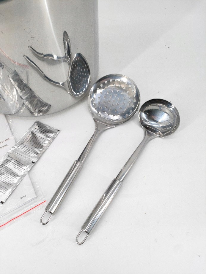 Duży garnek stalowy tradycyjny 23L 31 cm nierdzewny z pokrywką +akcesoria