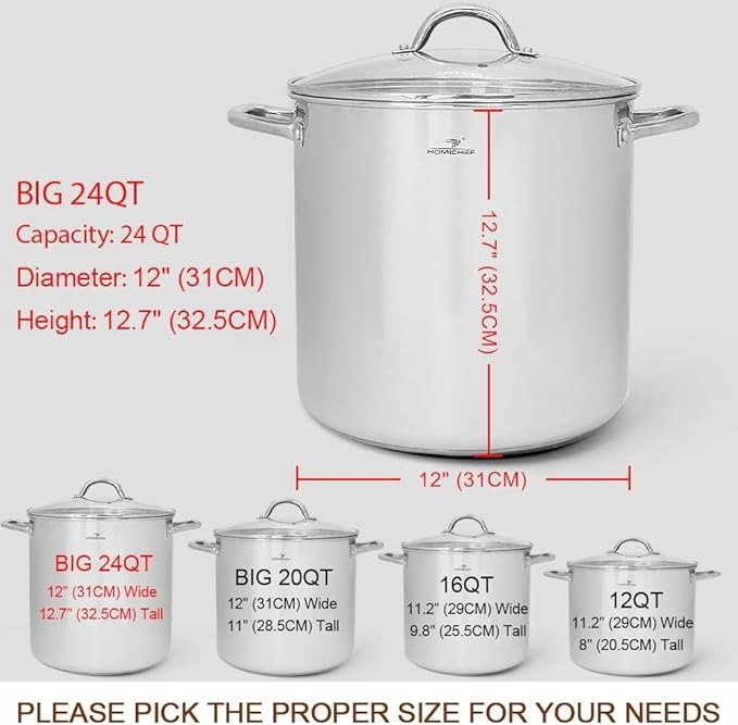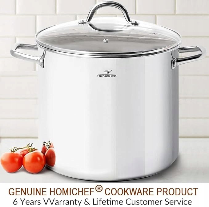 HOMICHEF DUŻY GARNEK DO BULIONU 24 quarty z pokrywką – garnek do garnka ze stali nierdzewnej bez niklu garnek do bulionu 24 quarty – Healthy Ware Polerowane garnki do bulionu – Mocny garnek indukcyjny Garnek do zupy z pokrywką