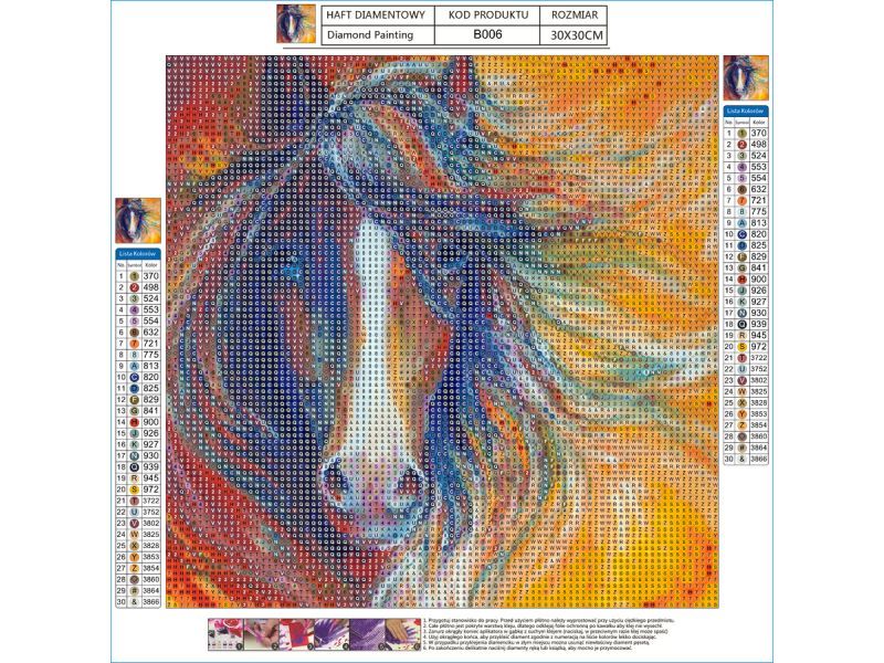 DUŻY Haft Diamentowy Mozaika Diamentowa ABSTRAKCYJNY KOŃ 40x40cm