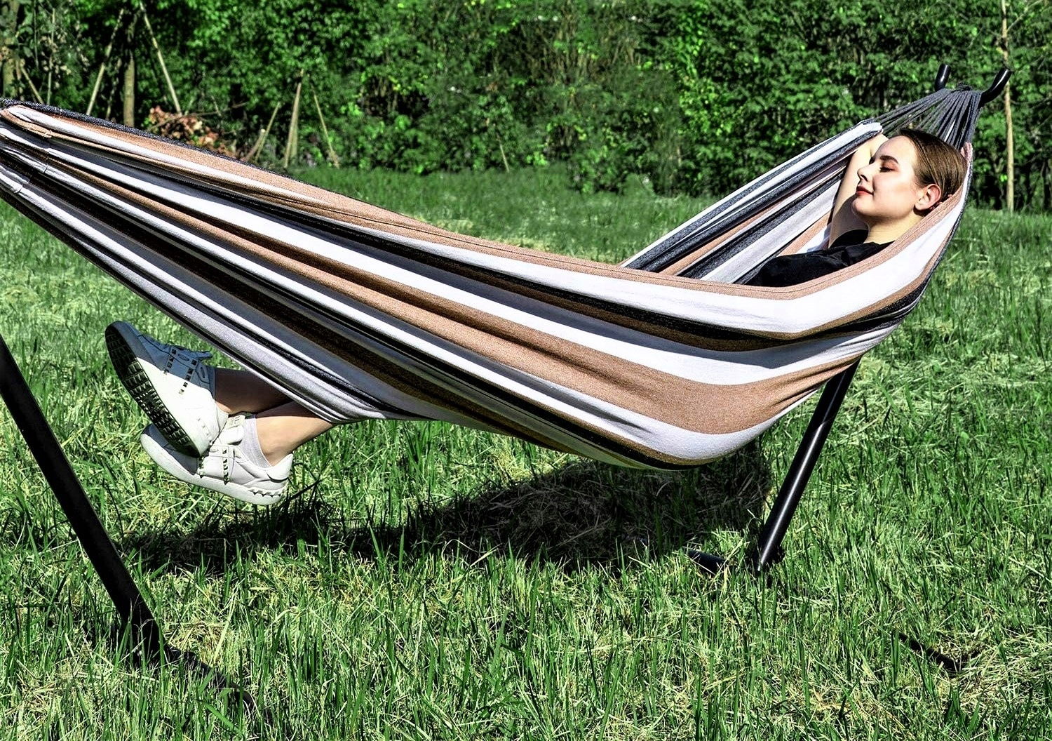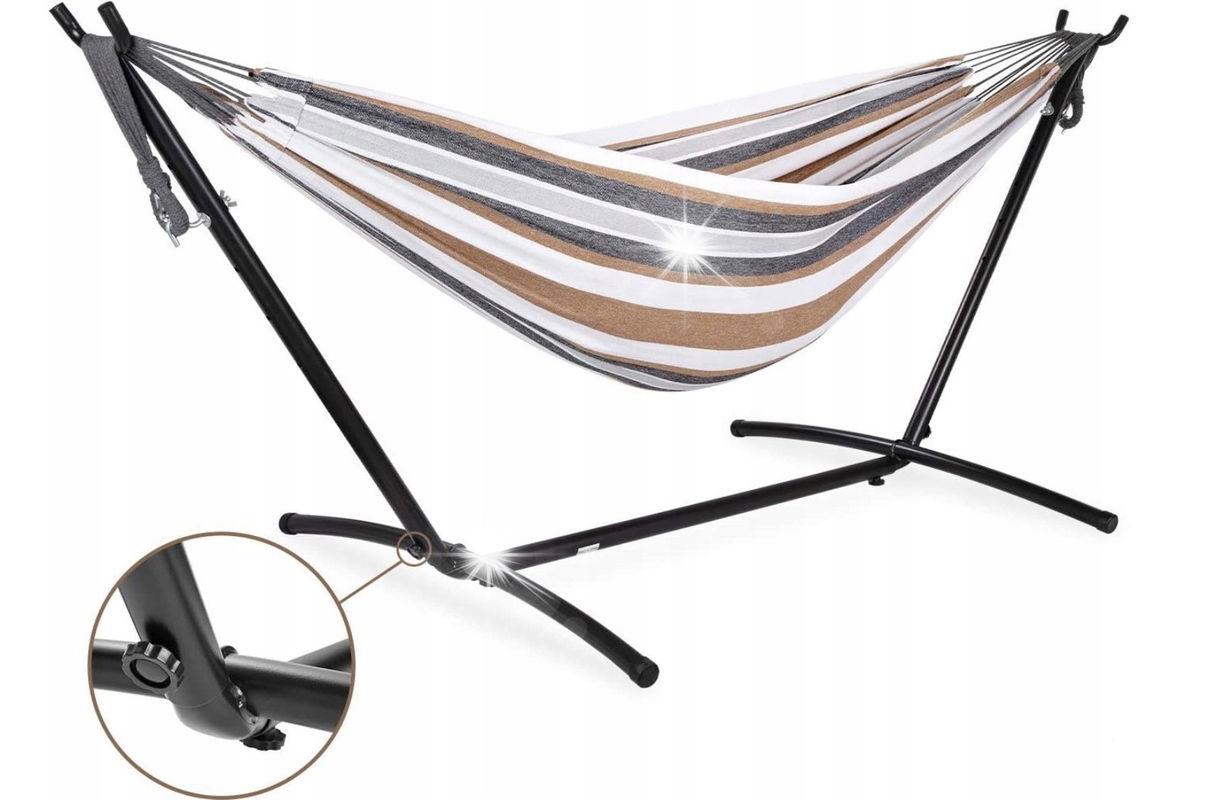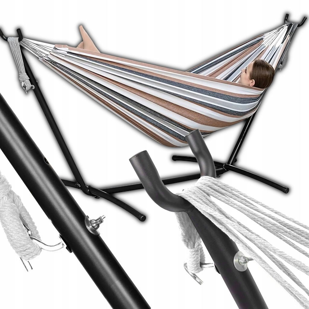 ✅ Wygodny hamak - w zestawie z naszym stelażem, znajduje się wyjątkowo wygodny hamak dwuosobowy.