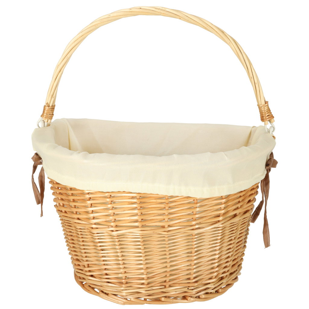 ESTETYCZNY WYGLĄD I FUNKCJONALNOŚĆ - Kosz wykonany z plecionej wikliny prezentuje się naturalnie i efektownie. Biały materiałowy wkład w środku nadaje mu lekkości i elegancji, chroniąc jednocześnie przewożone rzeczy. To świetny wybór dla osób, które cenią połączenie praktyczności z dekoracyjnym wyglądem.