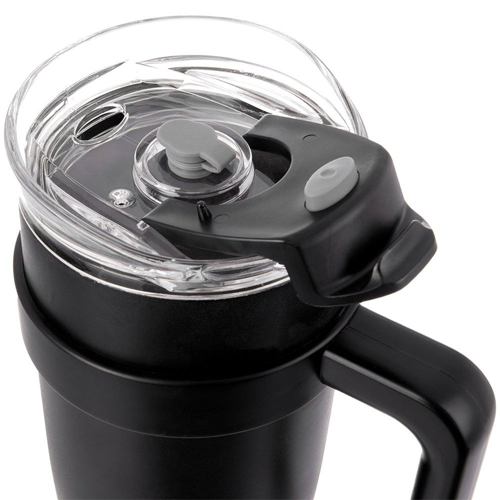 Solidnie wykonany - Kubek wykonany jest z najwyższej jakości stali nierdzewnej w czarnym kolorze. Rurka stalowa w srebrnym kolorze. Uchwyt kubka wykonany jest z tworzywa w czarnym kolorze a pokrywa z przezroczystego tworzywa. Użyte materiały zapewniają trwałość, odporność na uszkodzenia i bezpieczeństwo użytkowania.