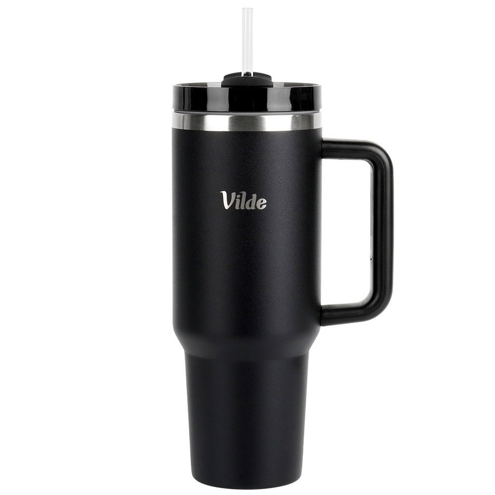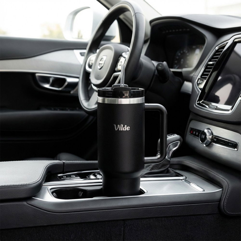 DUŻY KUBEK TERMICZNY Z UCHWYTEM TERMOS PODRÓŻNY SAMOCHODOWY CZARNY 1,2L XXL