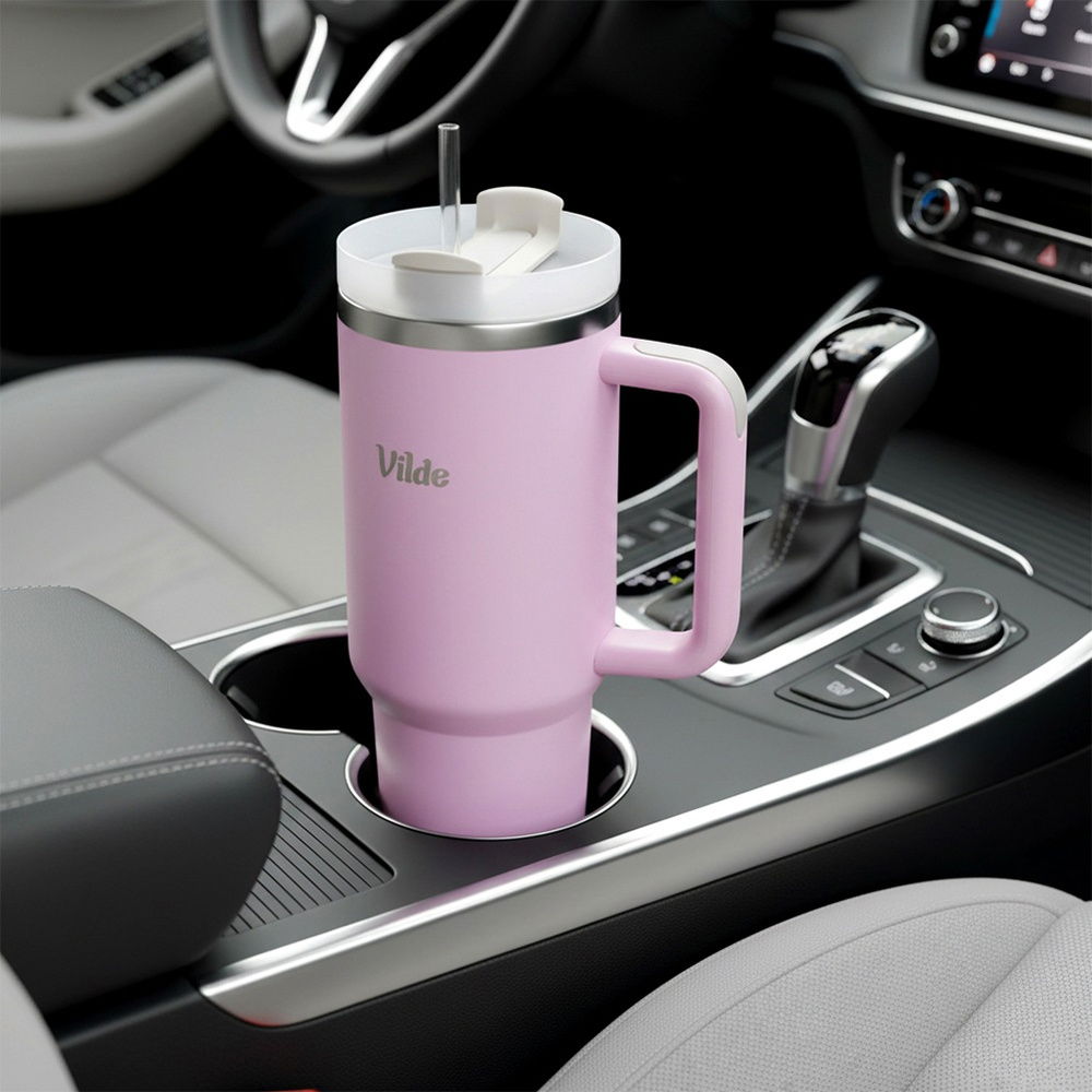 DUŻY KUBEK TERMICZNY Z UCHWYTEM TERMOS PODRÓŻNY SAMOCHODOWY RÓŻOWY 1,2L XXL