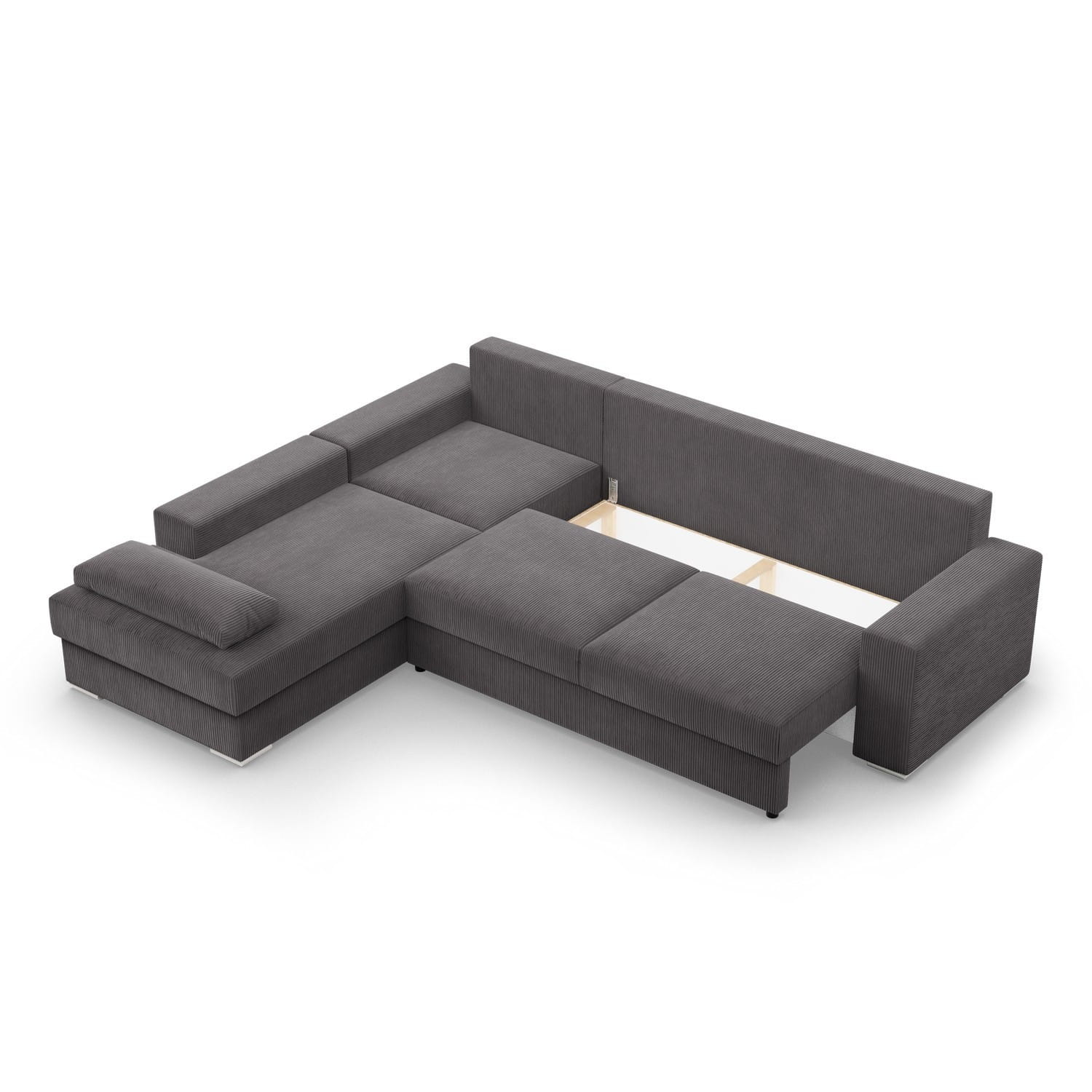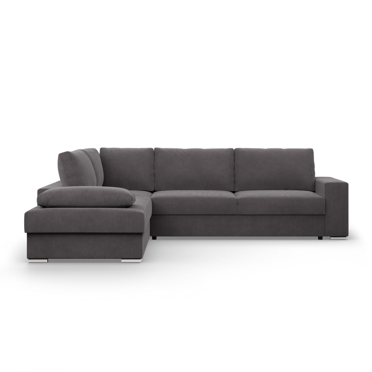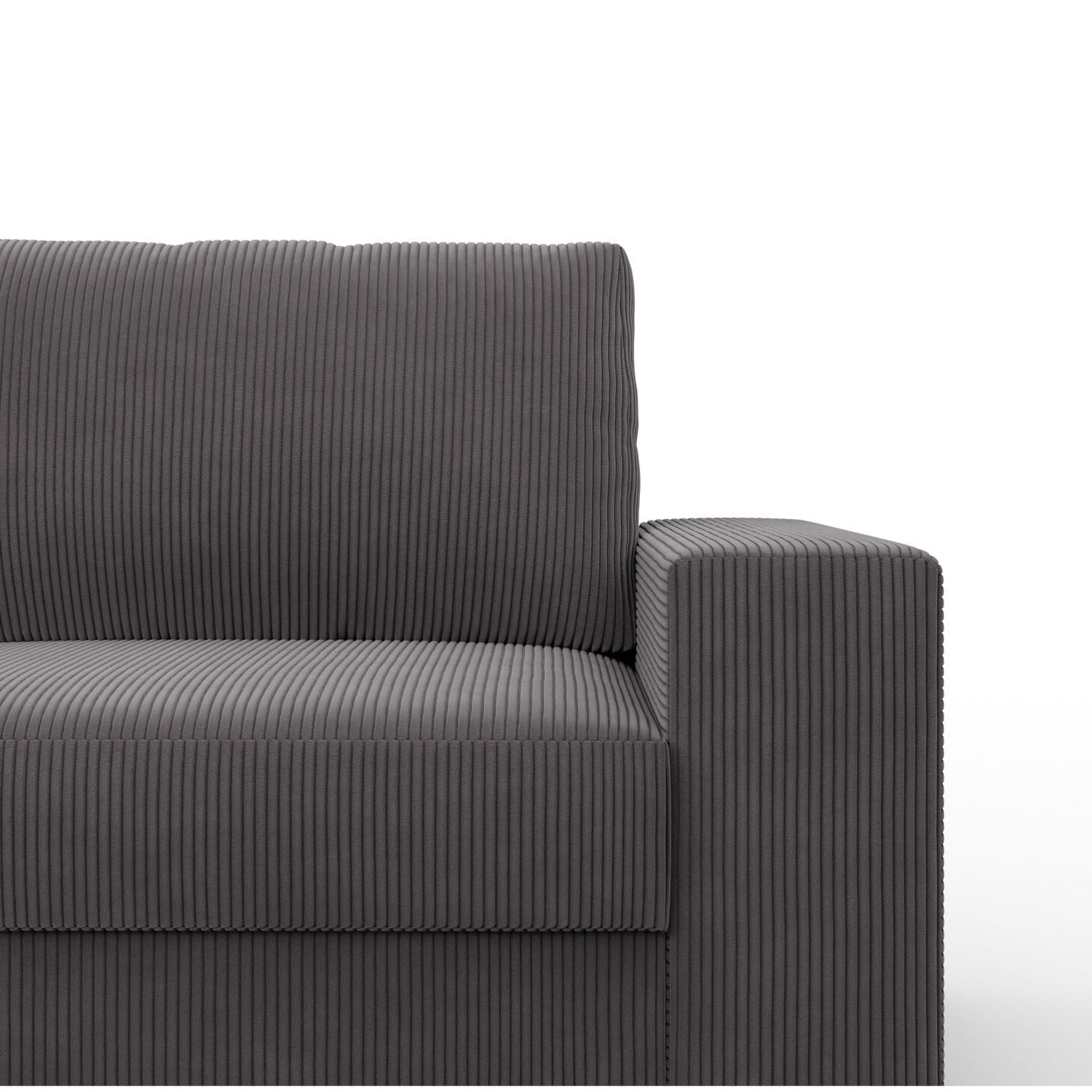 Duży narożnik, Momento, lewy, sztruks, 287x231x86 cm, ciemny szary. Narożnik MOMENTO to mebel, który urzeka swoim wyglądem i funkcjonalnością. Wykonany z miękkiego i przyjemnego w dotyku sztruksu, w kształcie litery L, idealnie odnajdzie się w dużych przestrzeniach, stając się centralnym punktem każdej aranżacji.